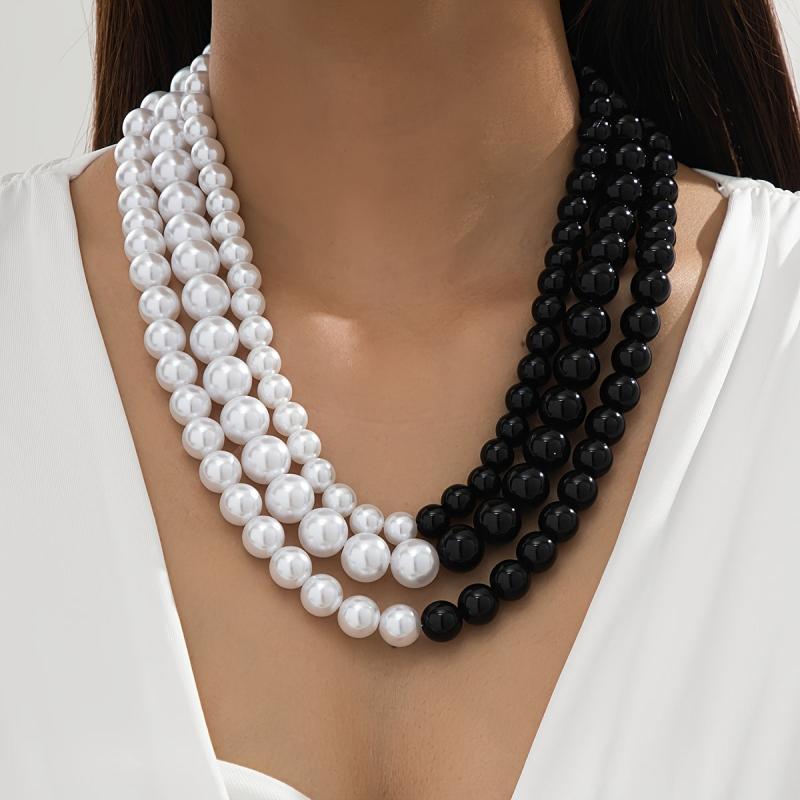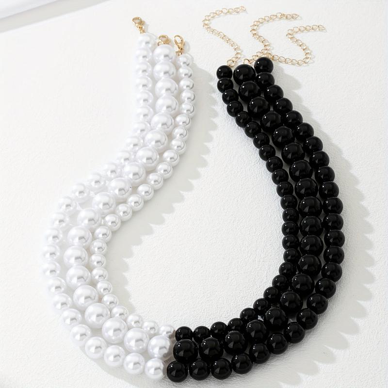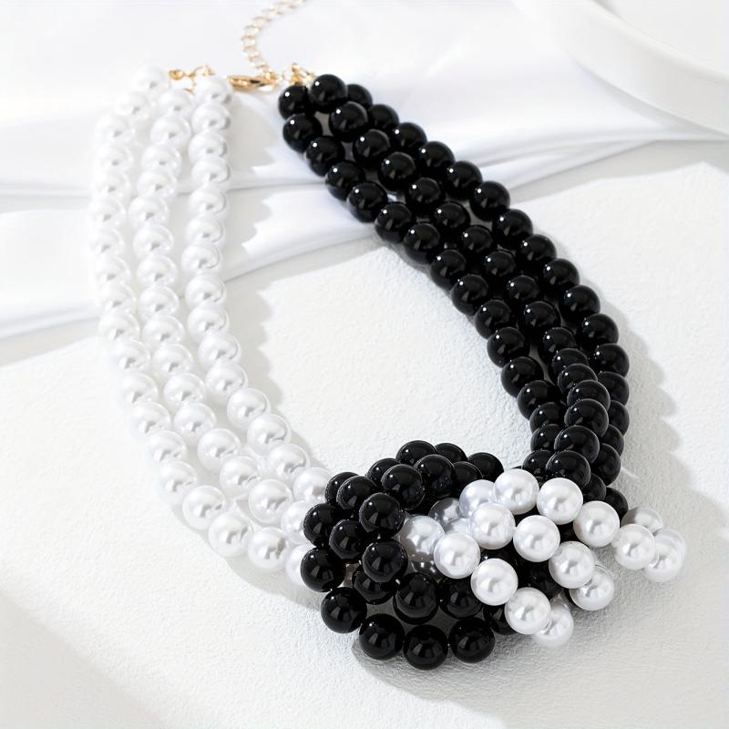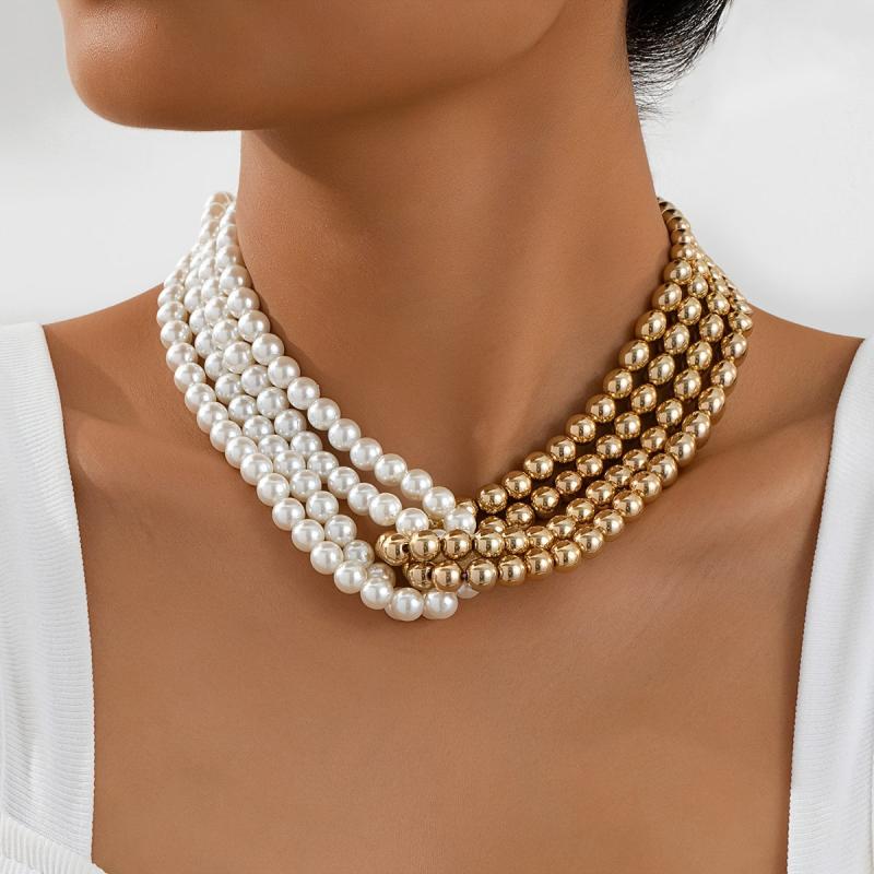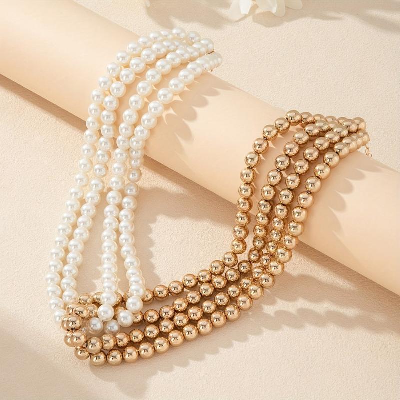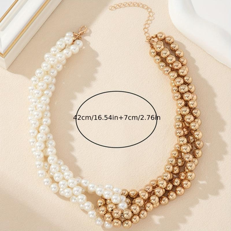 This vintage French choker necklace features a durable plastic chain with layers and beads, perfect for daily wear or parties year round. The 18K golden plating adds a touch of elegance to any outfit.