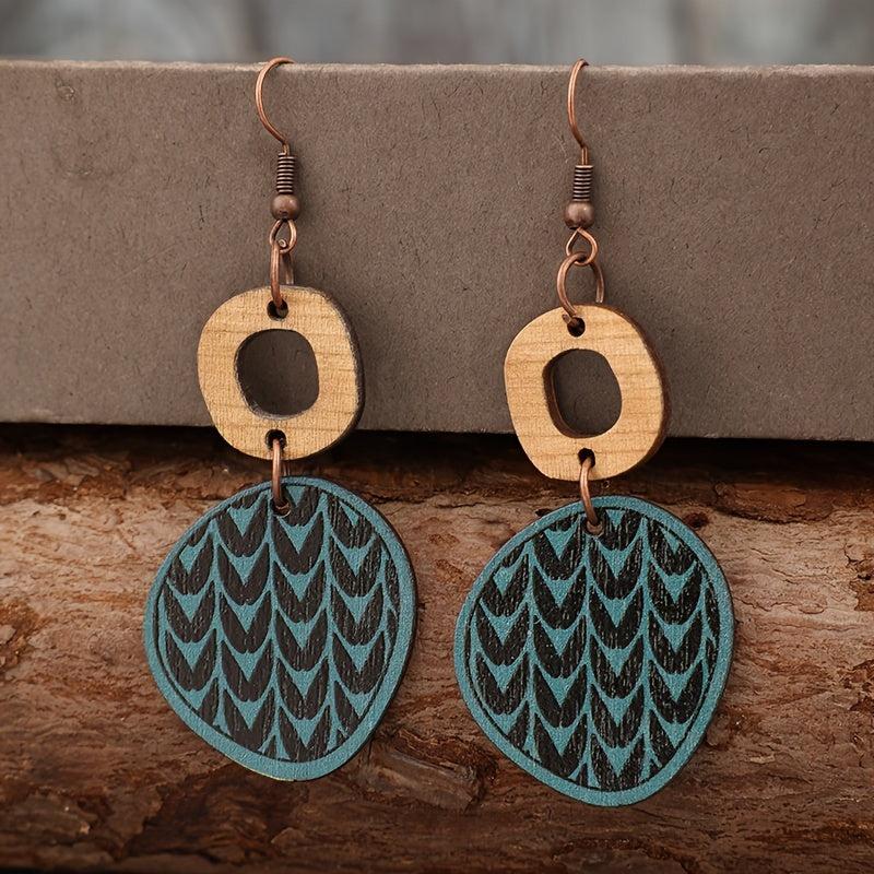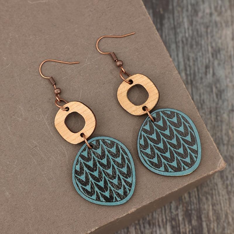Elegant pair of vintage-inspired hoop earrings with geometric print and hollow stitching design.