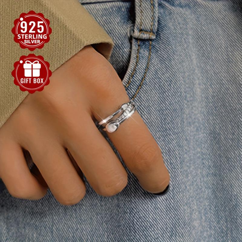 Add a touch of elegance to any outfit with this vintage-inspired open ring. Made with 925 sterling silver, this double geometric ring is perfect for parties, events, or as a holiday surprise gift for someone special.