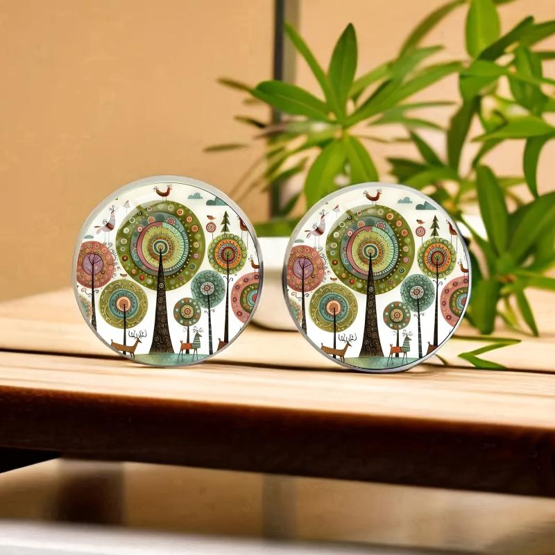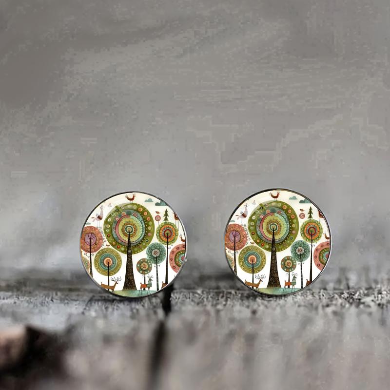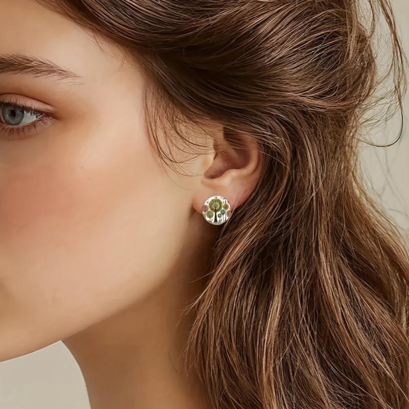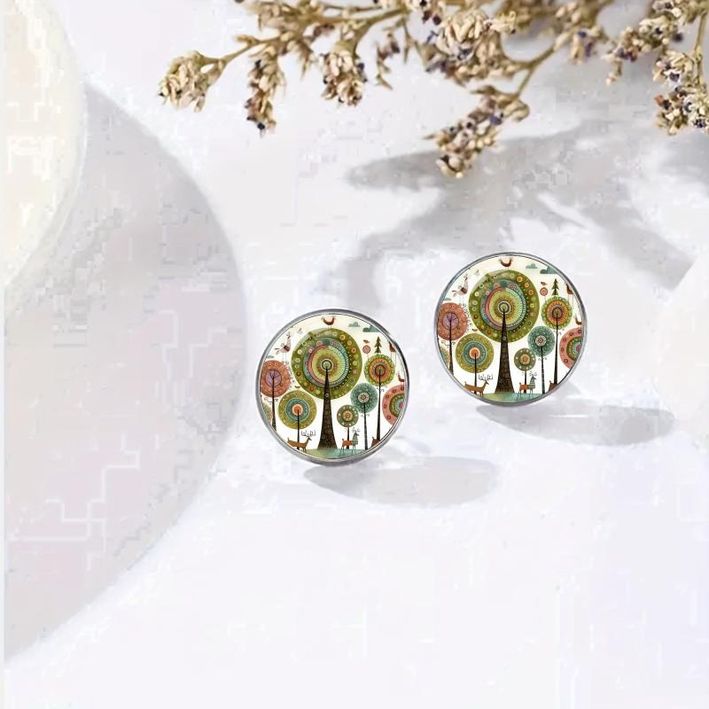 Add a touch of bohemian style to your outfit with these vintage green tree pattern stainless steel stud earrings. They are hypoallergenic and perfect for everyday wear.
