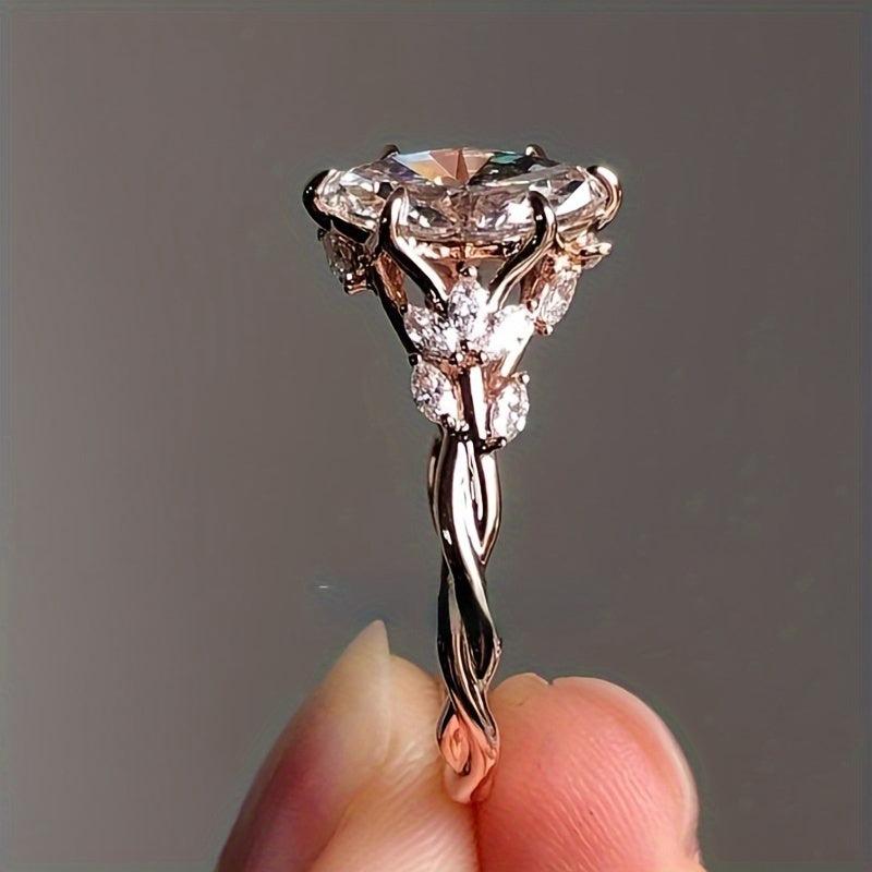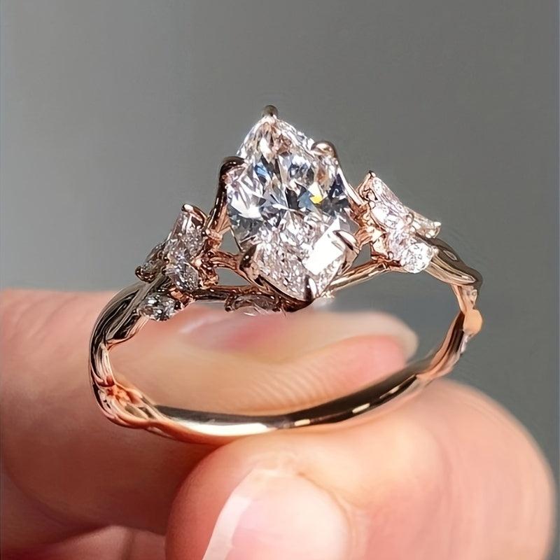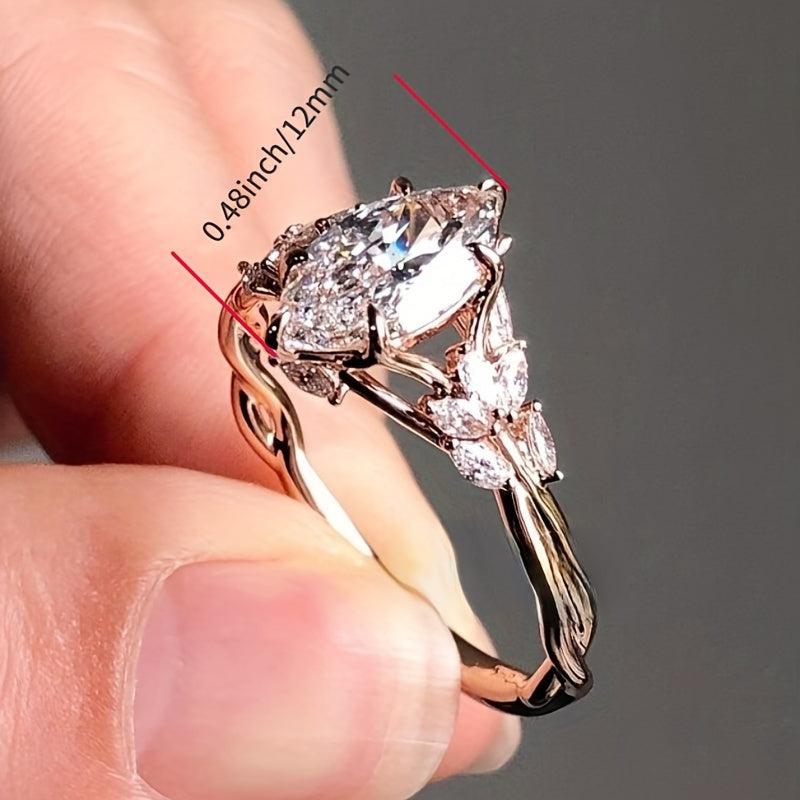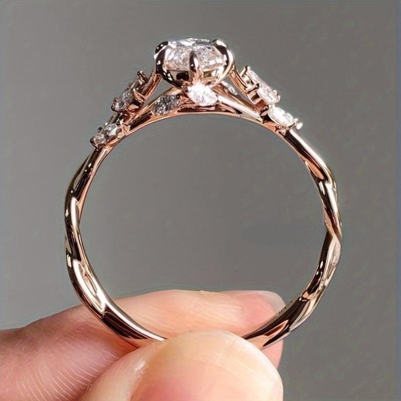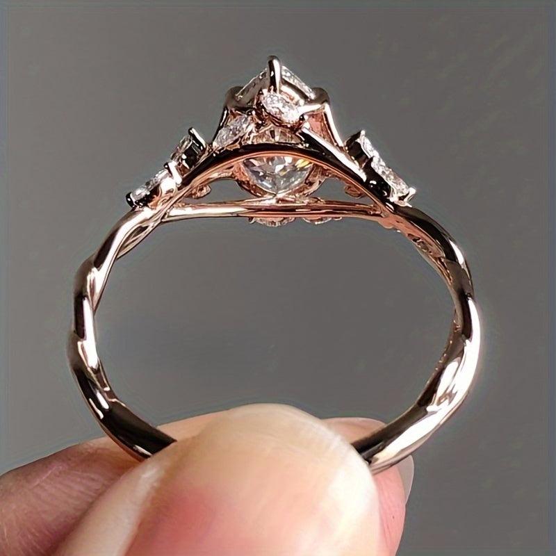 This vintage-inspired engagement ring features a unique twist shank design with branch details, crafted from copper and adorned with a synthetic cubic zirconia stone. Suitable for weddings and banquets.
