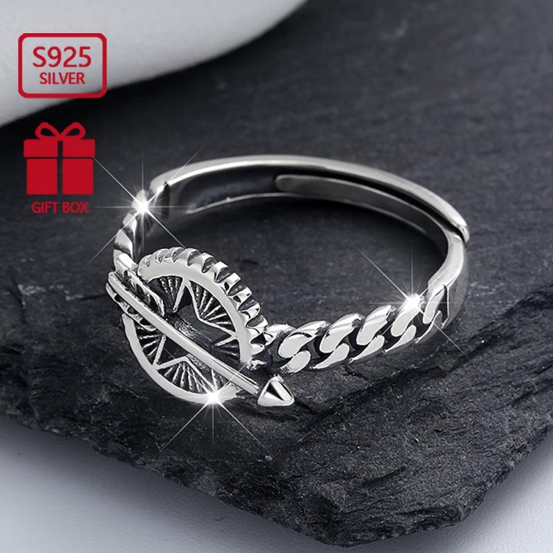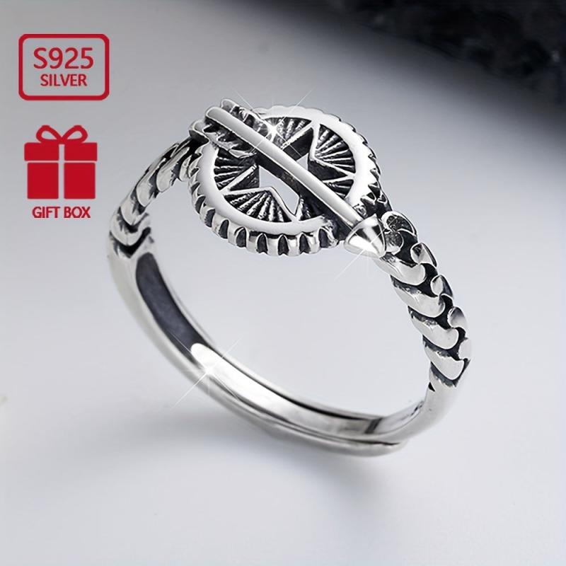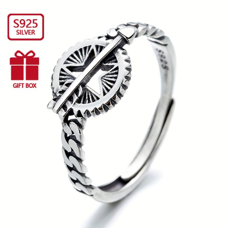 This vintage distressed index ring features a charming Cupid's arrow design crafted from S925 sterling silver. Ideal for a touch of romantic flair to your look.
