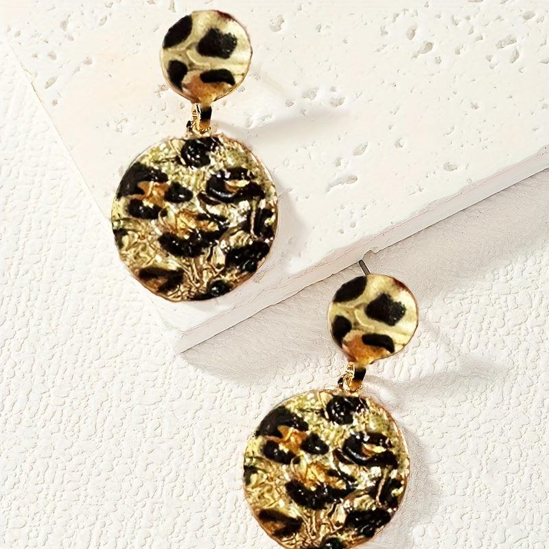 Chic vintage style leopard print circle drop earrings with textured alloy and iron post, perfect for Thanksgiving and Christmas.