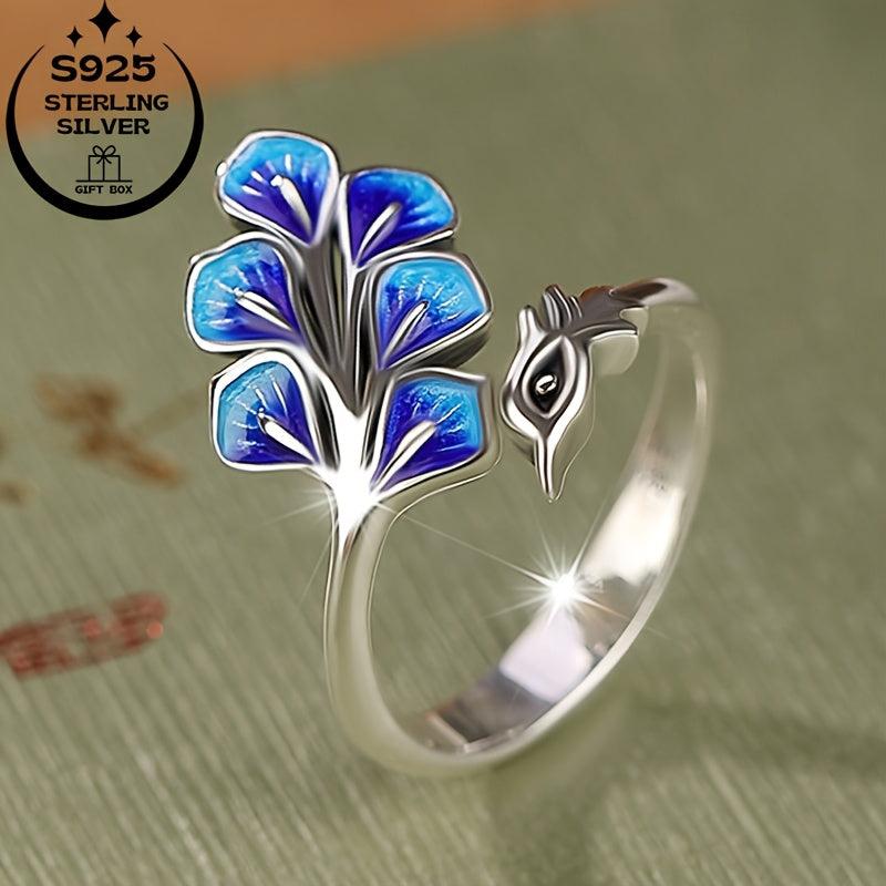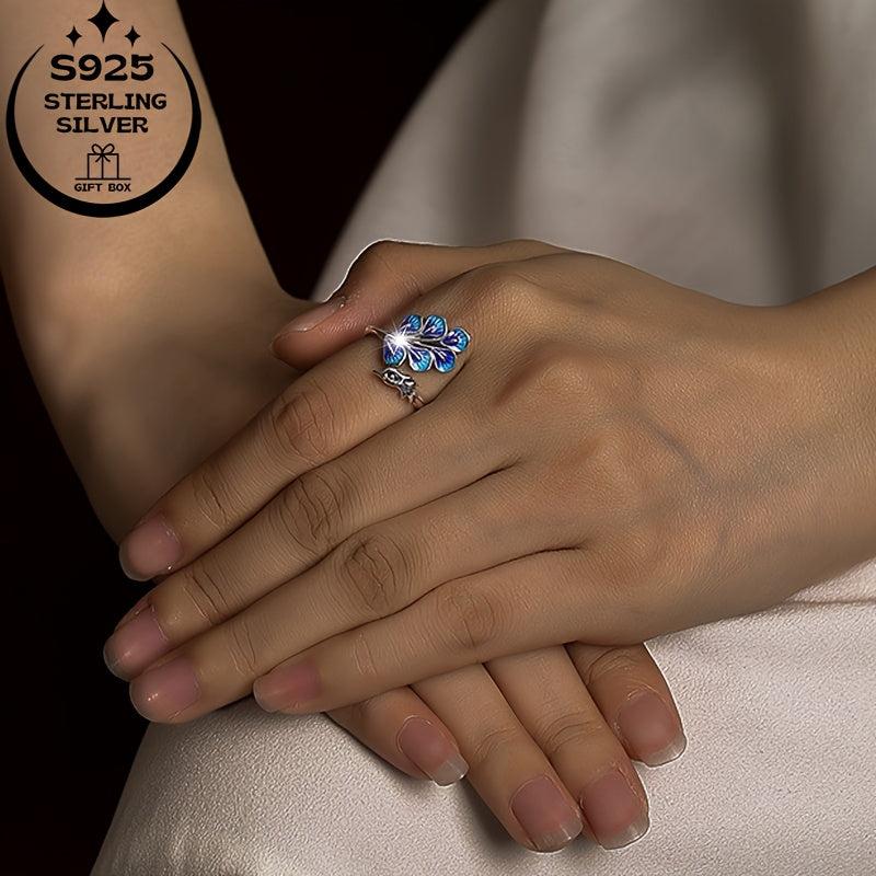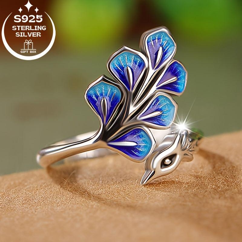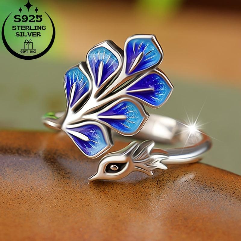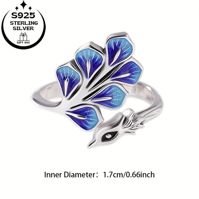 This stunning Vintage Peacock Enamel Open Ring is crafted from 925 Sterling Silver. The intricate design with golden accents makes it a perfect gift for anniversaries or birthdays. It is suitable for daily wear and can be easily adjusted to fit most sizes.