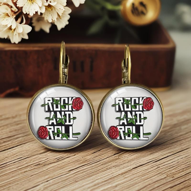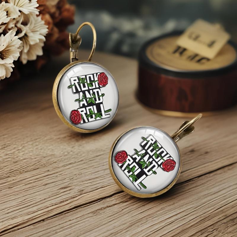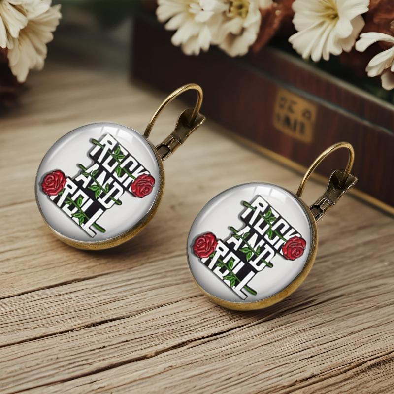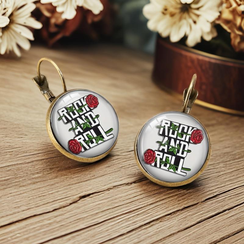 Add a touch of retro charm to your style with these stud earrings featuring red roses and green leaves on a golden tone metal setting.