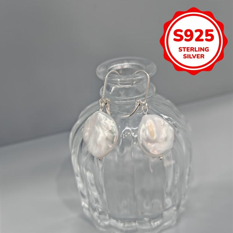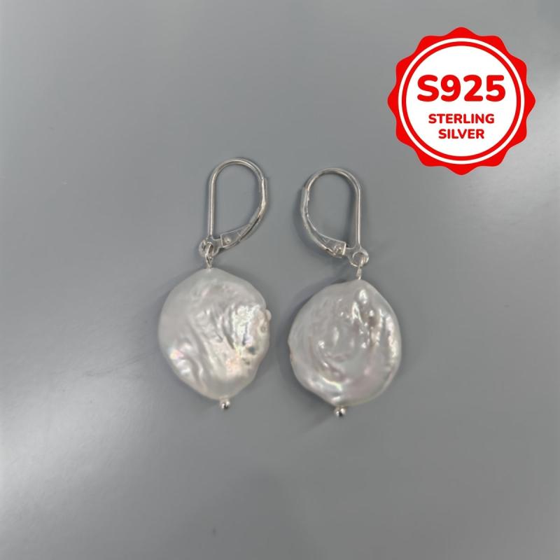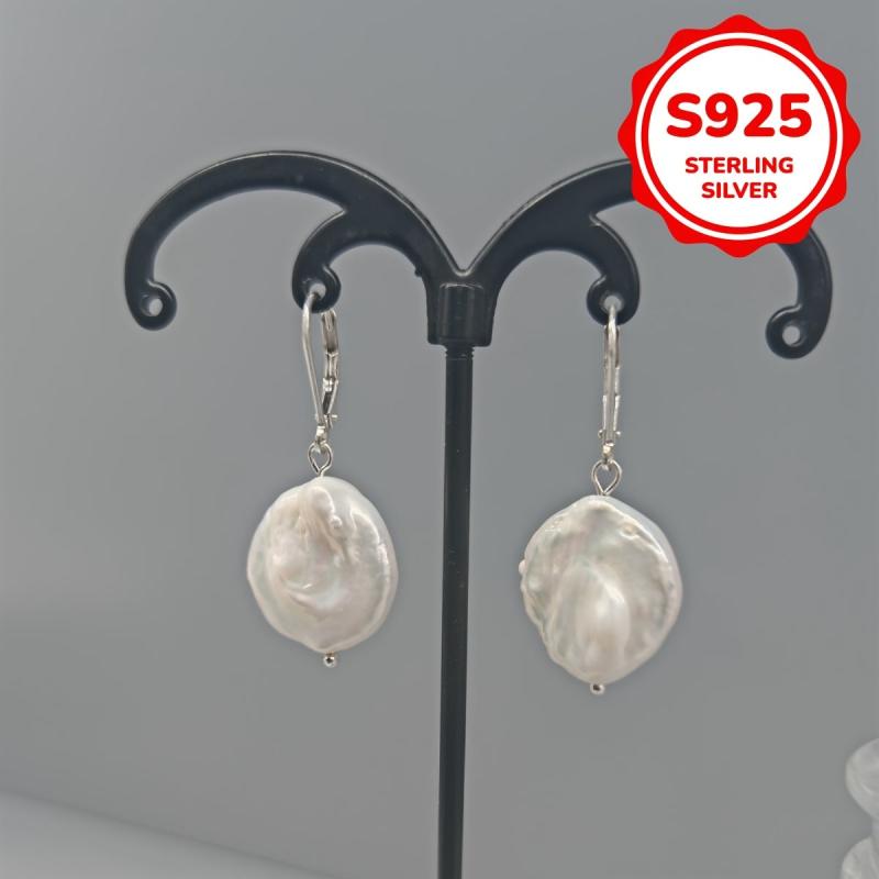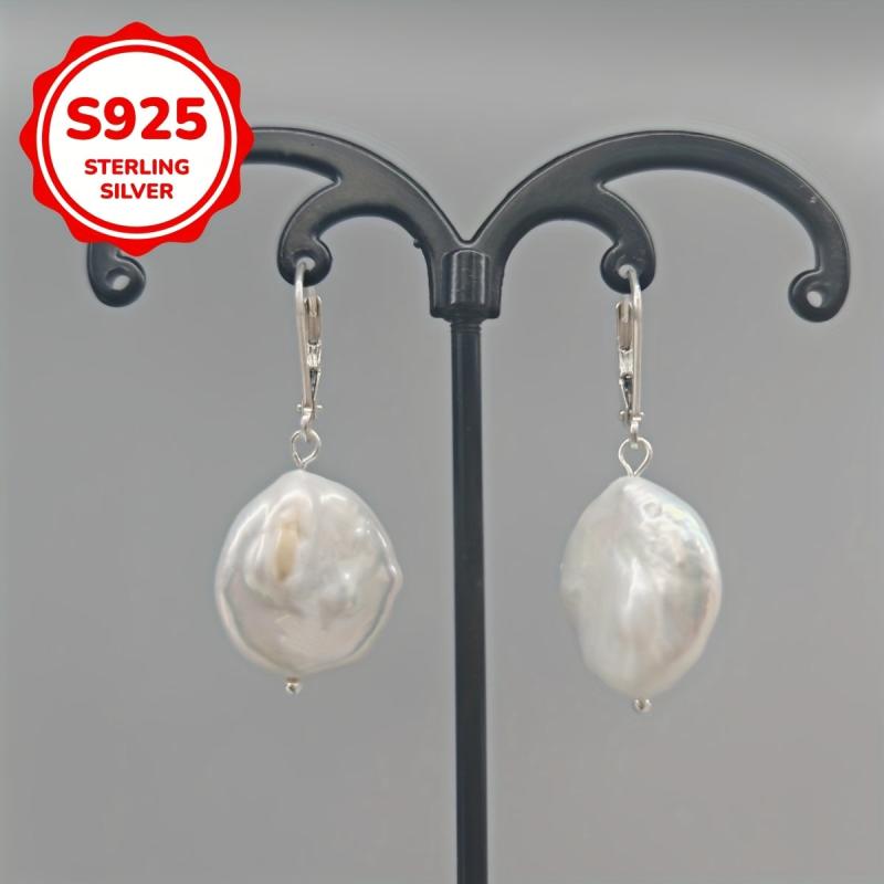 Elegant vintage royal earrings featuring natural freshwater pearls. Crafted from 925 sterling silver, these silvery earrings are lightweight at 1.3 grams.