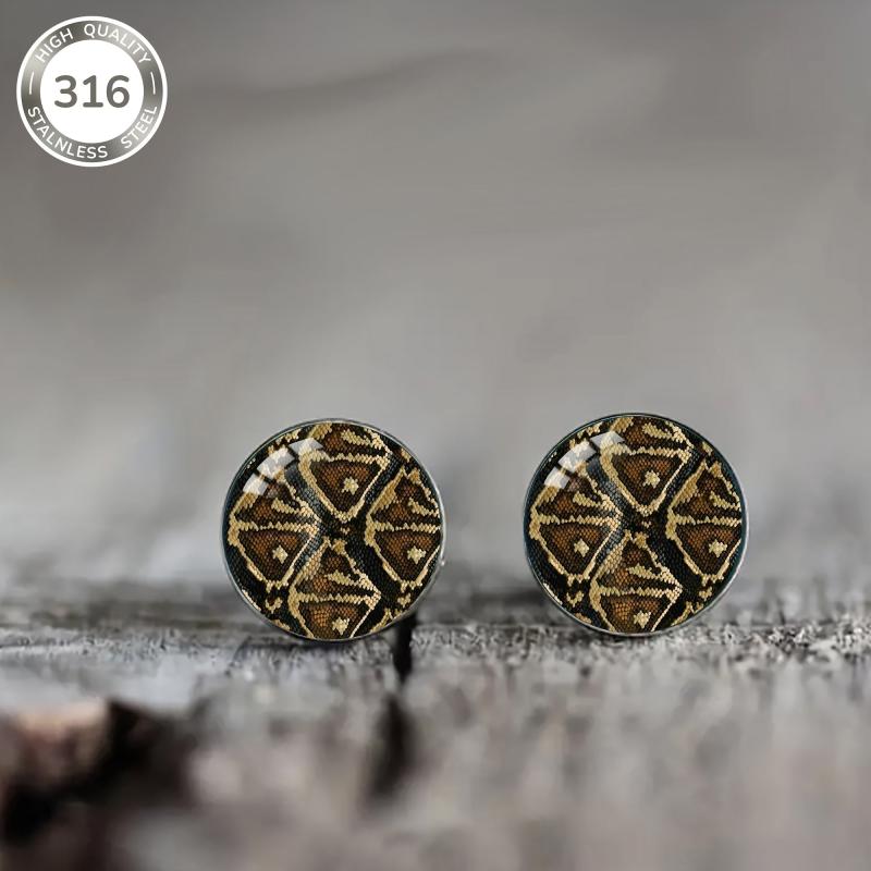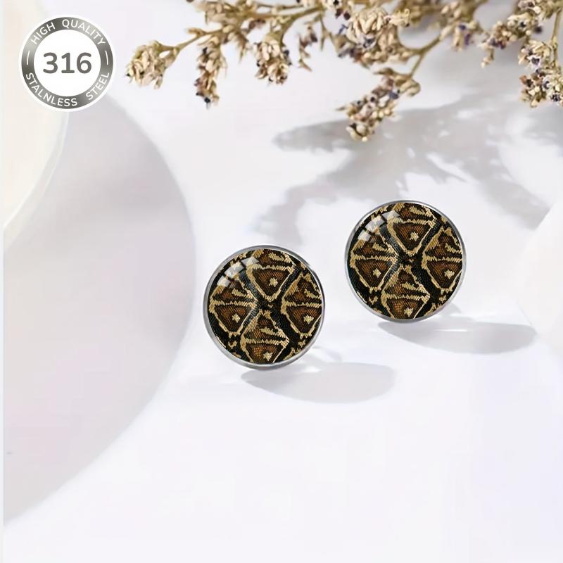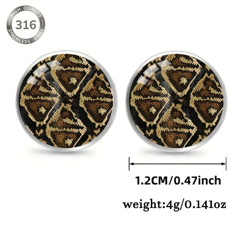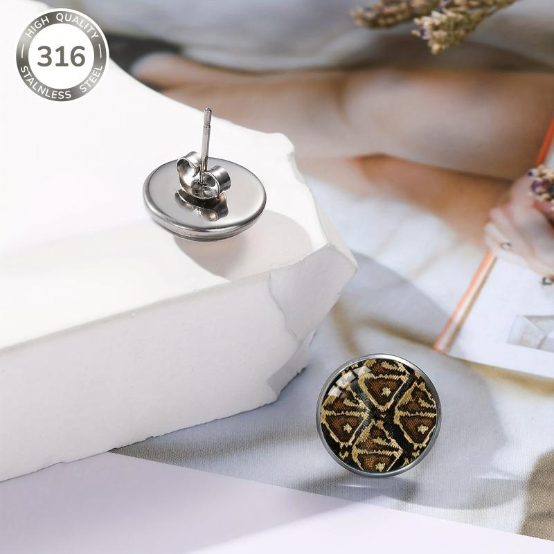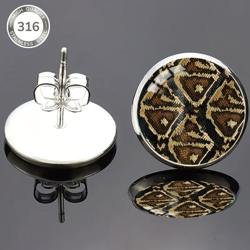 Add a touch of retro punk style to your everyday look with these vintage snake pattern stud earrings. The earrings are made of high-quality 316 stainless steel and feature a unique convex glass inlay. Perfect for parties, music festivals, or any occasion!
