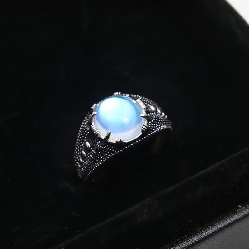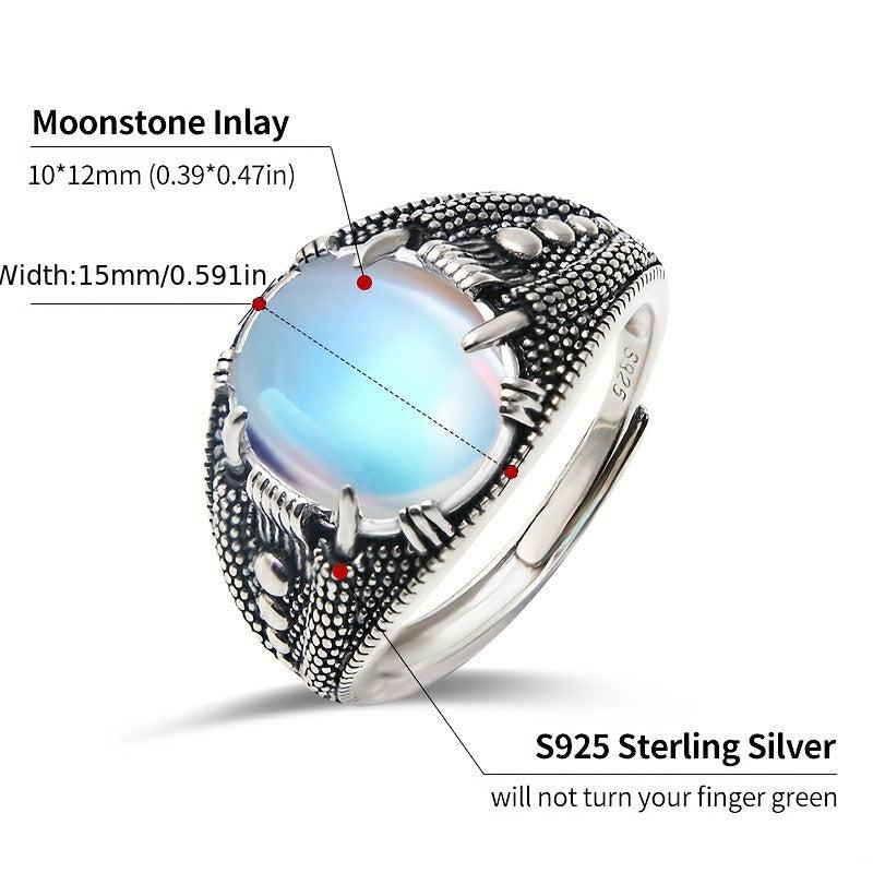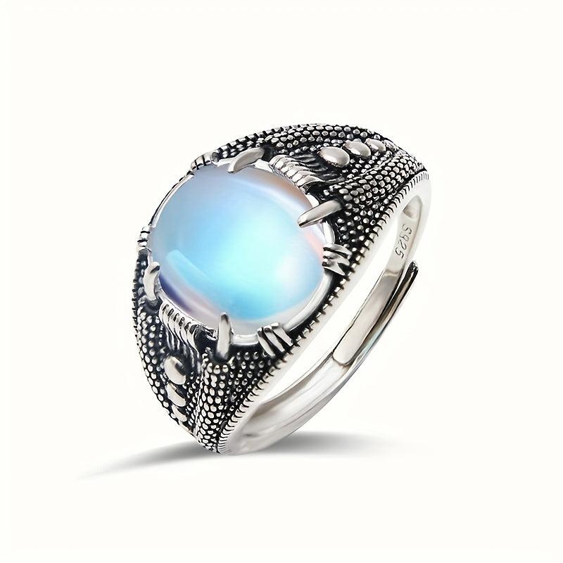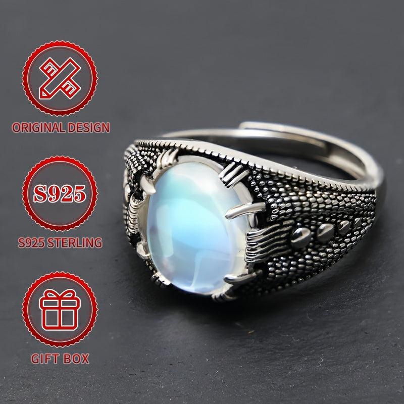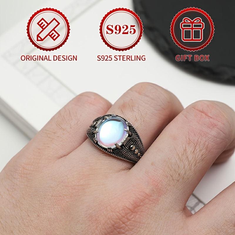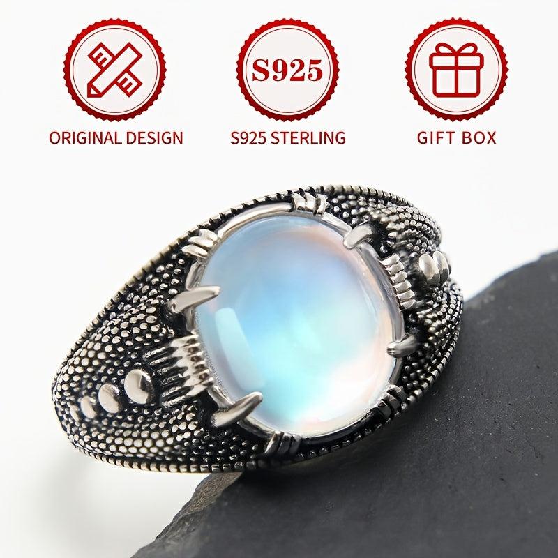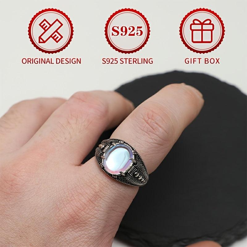 Add a touch of vintage charm to your look with this S925 sterling silver ring featuring a synthetic moonstone. The rhodium plating adds a sleek finish, perfect for Halloween or Thanksgiving outfits with gothic elements.