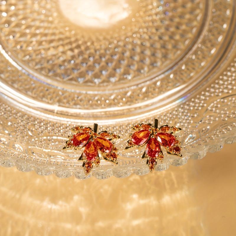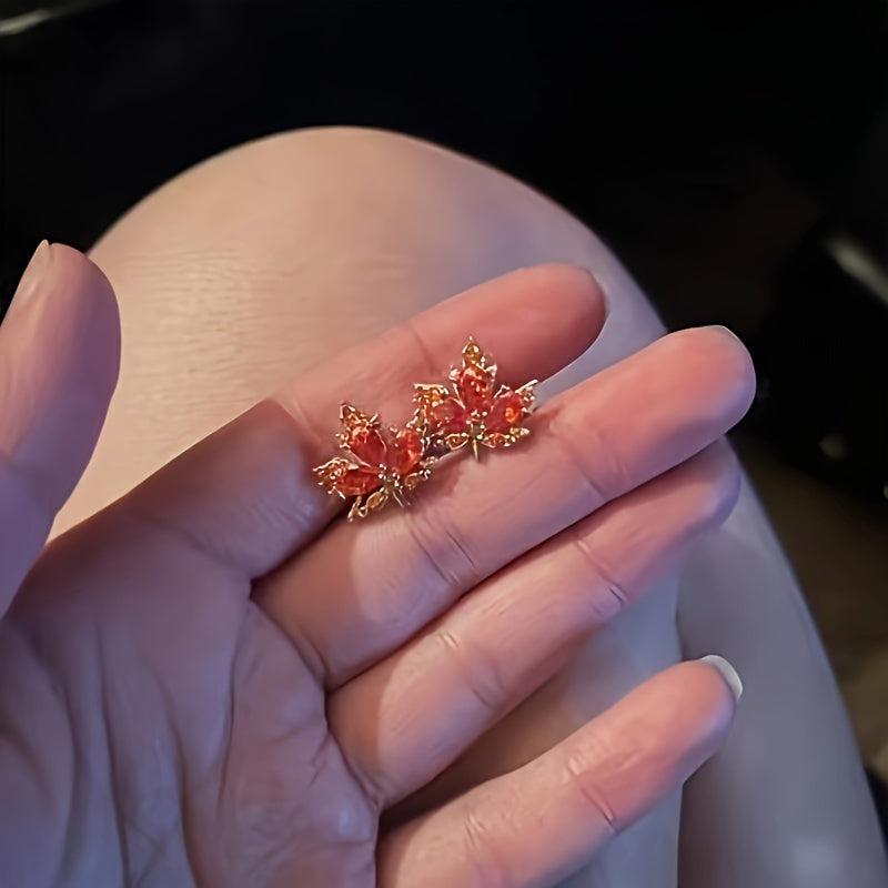 Add a touch of nature-inspired elegance to your look with these vintage-style stud earrings featuring red maple leaf design. Made from copper with nickel plating, these earrings are suitable for daily wear.