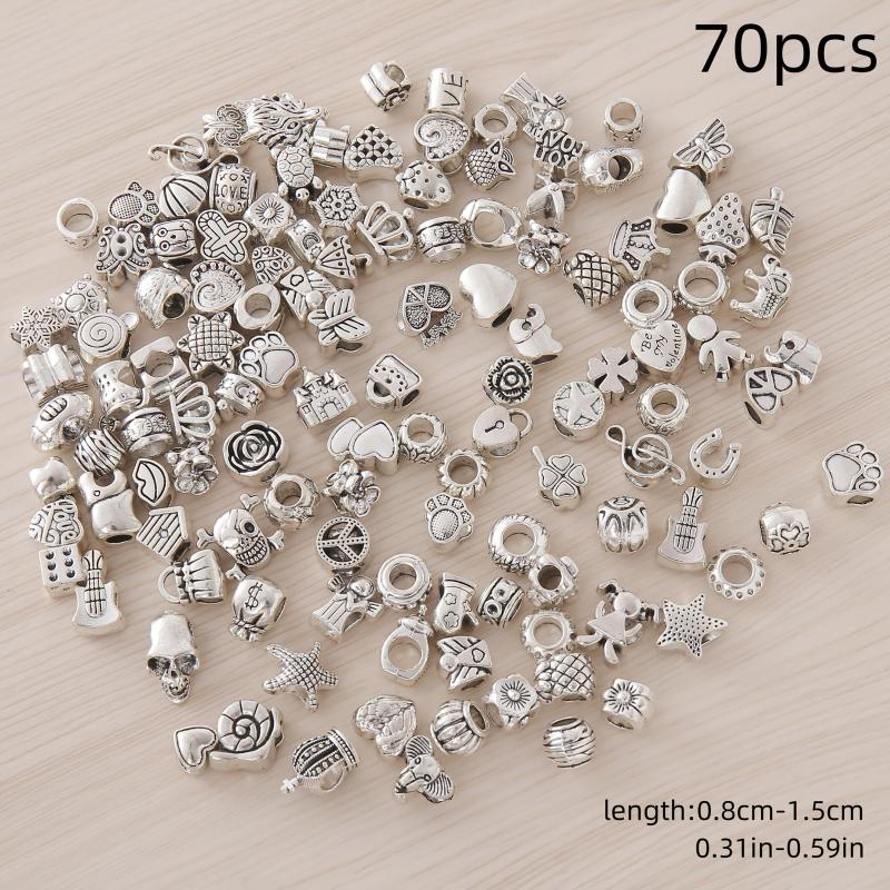 Add a touch of vintage charm with this set of 70 zinc alloy metal pendants featuring assorted themed synthetic stone craft supplies.