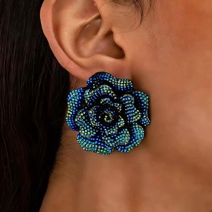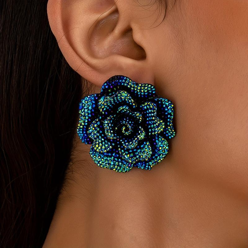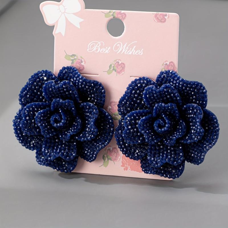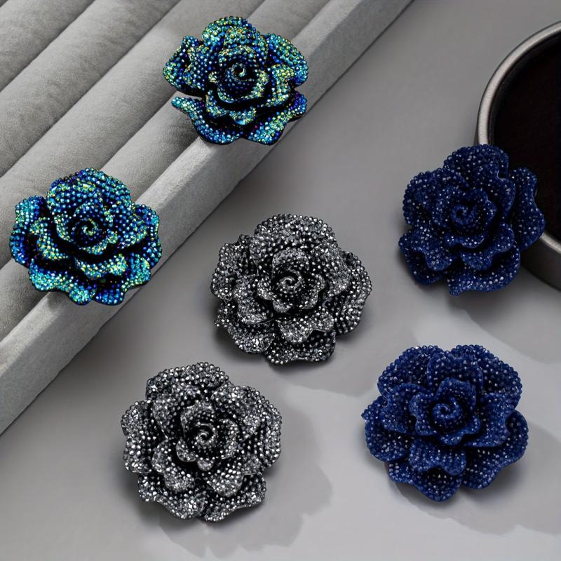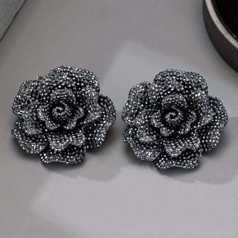 Add a touch of elegance with these sparkling rhinestone acrylic camellia flower stud earrings. Ideal for parties, weddings, and special occasions.