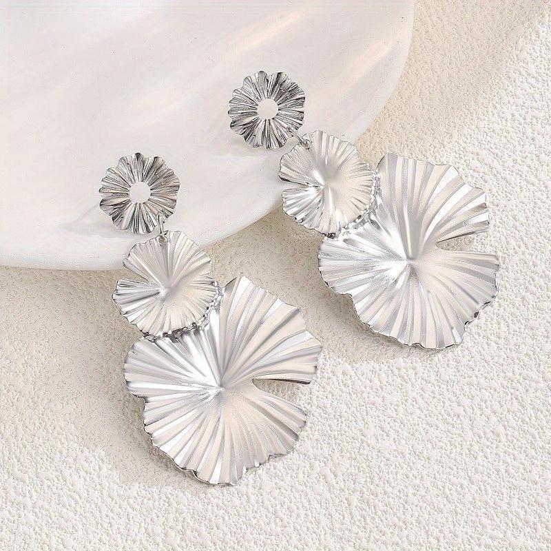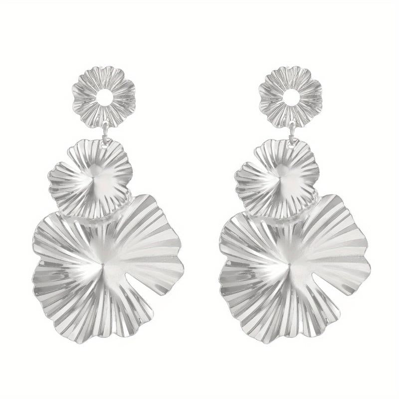 Elegant and versatile flower-shaped earrings made from iron material with stainless steel ear needles. Perfect for daily wear.