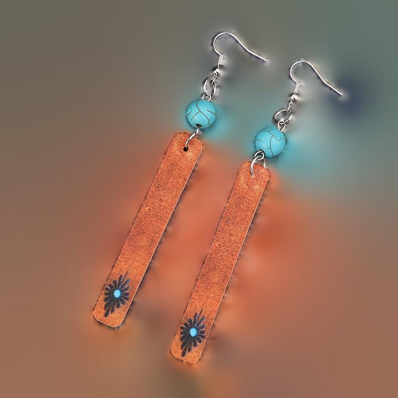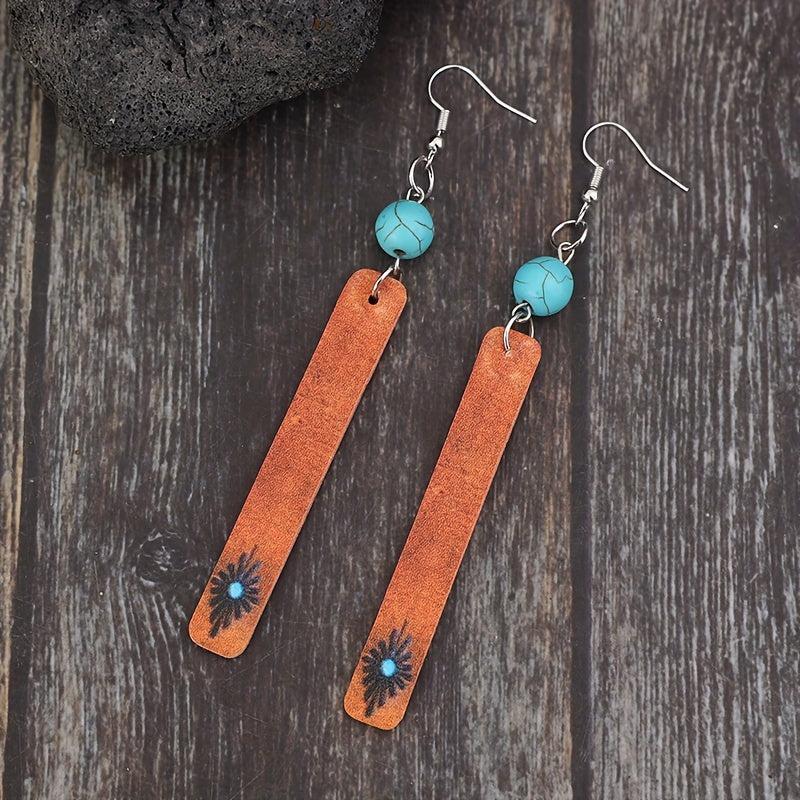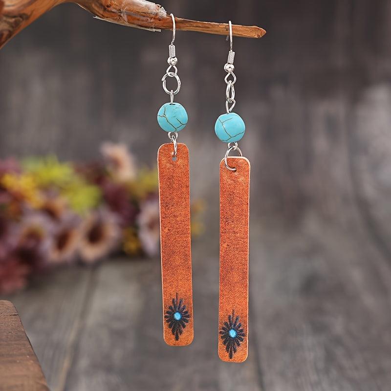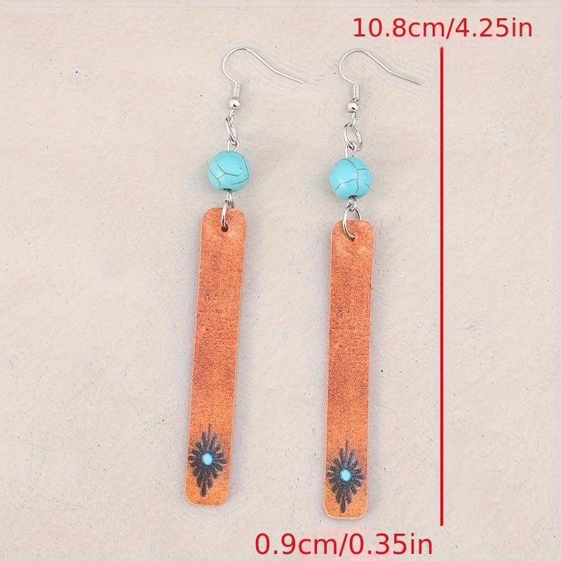 Add a touch of retro charm to your holiday ensemble with these vintage-inspired dangle earrings featuring turquoise beads and PU leather. Perfect for a bohemian or eclectic style.
