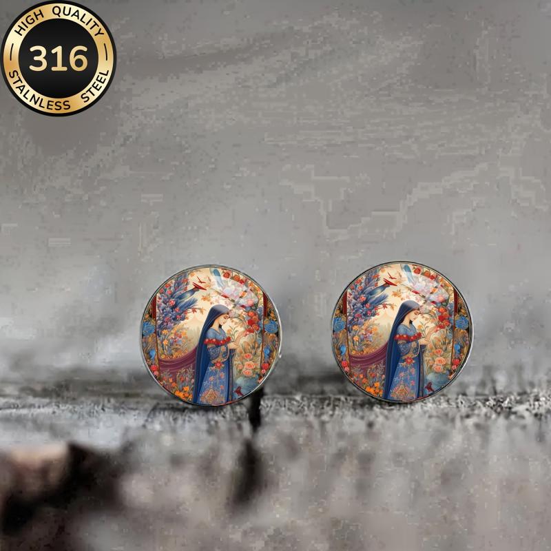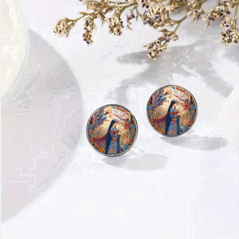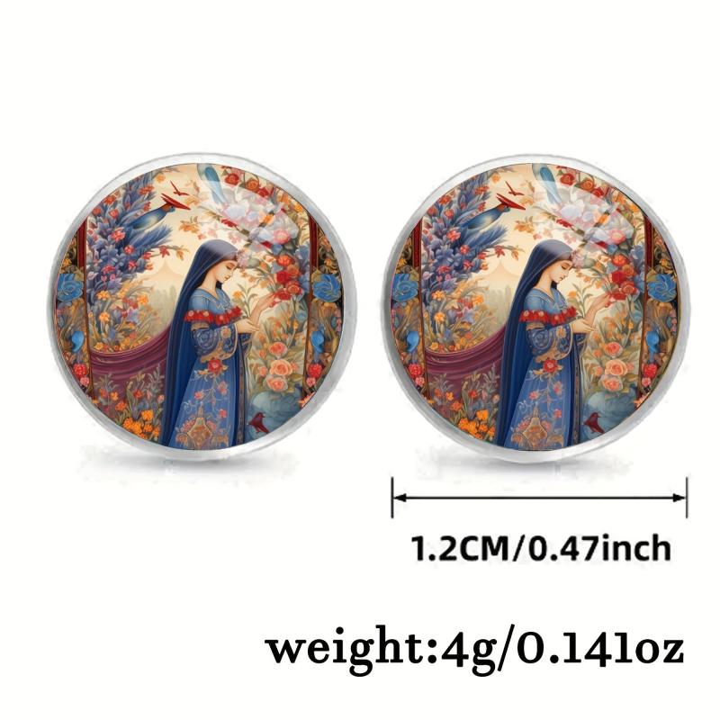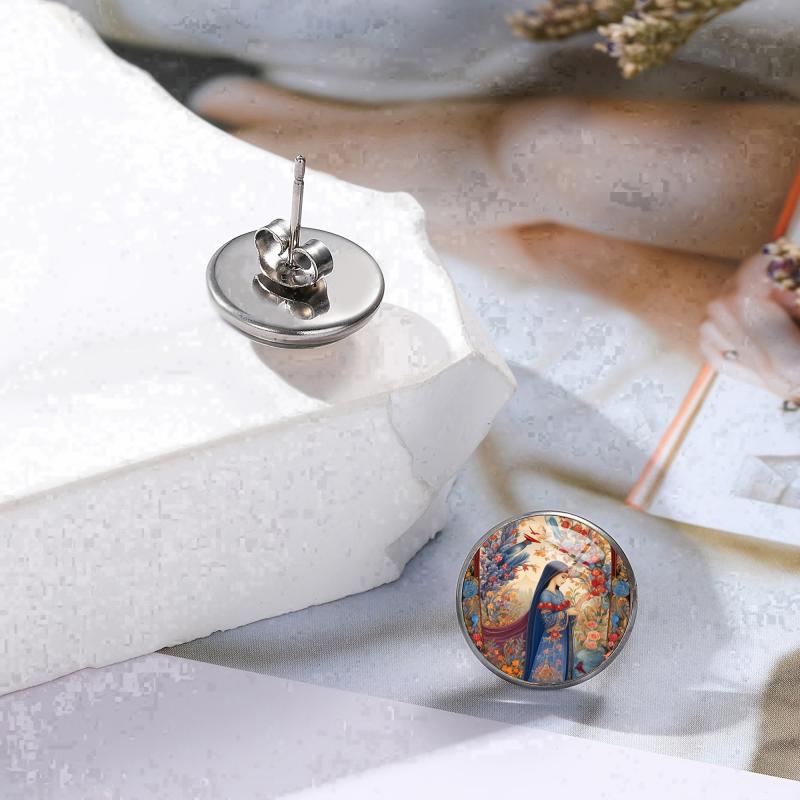 Classic and intricate stainless steel earrings featuring Virgin Mary design. Hypoallergenic and suitable for both men and women.