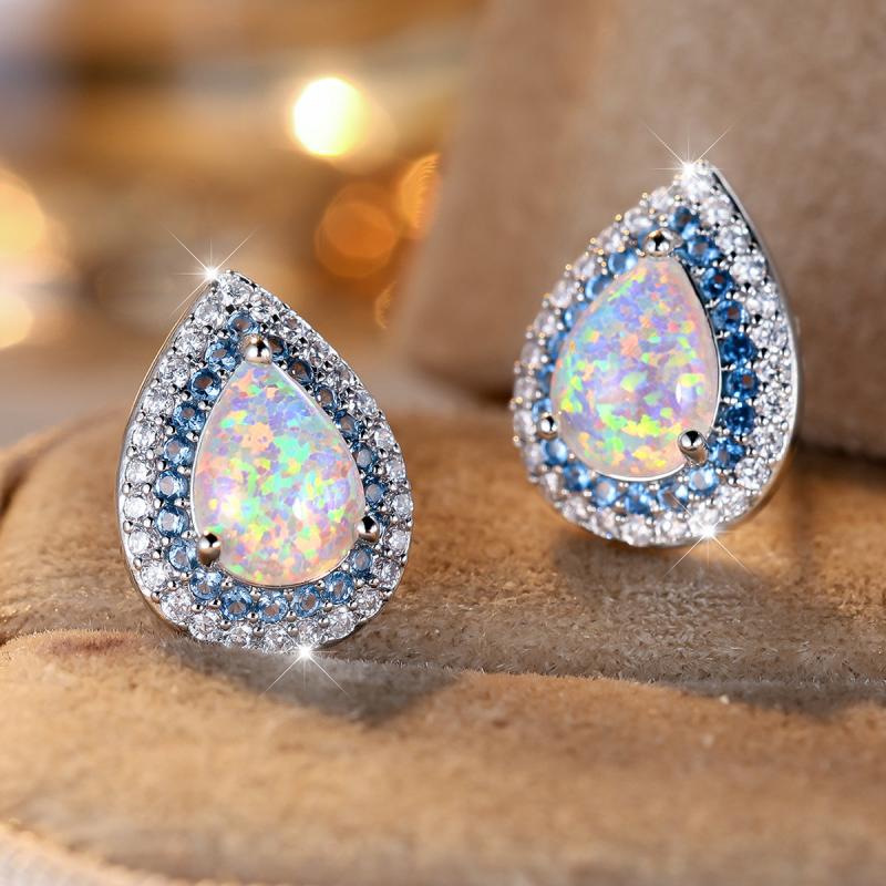 These stunning water drop opal earrings are perfect for brides, with a bohemian style that is ideal for beach vacations.
