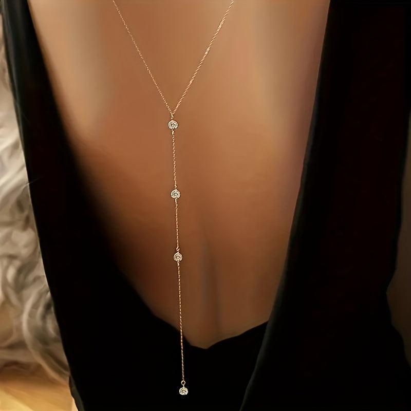 Enhance your look with this stunning long chain pendant featuring a water droplet body jewelry design. Perfect for adding a touch of elegance and sensuality to your outfit.