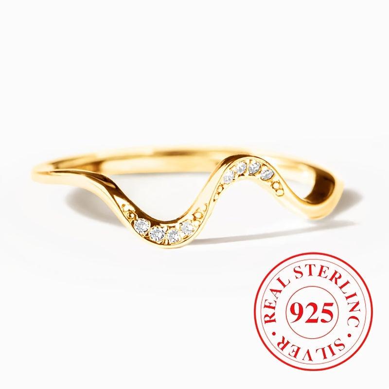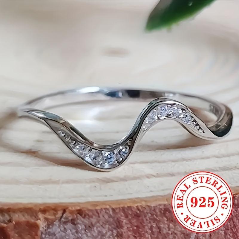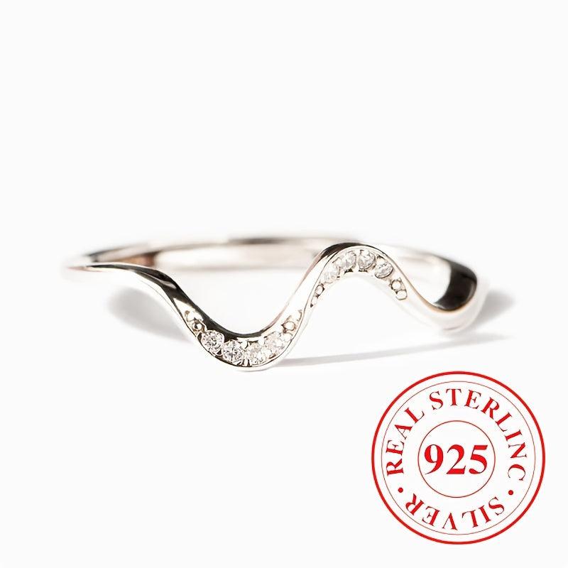 Elegant ladies' wedding ring crafted from 1.5 grams of premium 925 sterling silver featuring a wave pattern design set with sparkly zirconia stones in geometric lines.