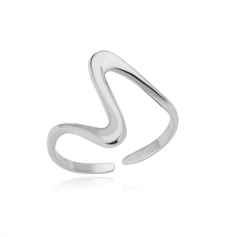 This stylish cuff ring features a wave shape design made of stainless steel with 18k gold plating. It is a versatile piece that can be worn daily to complement any outfit.