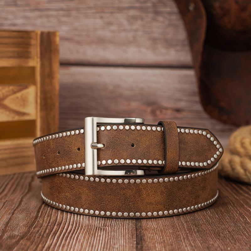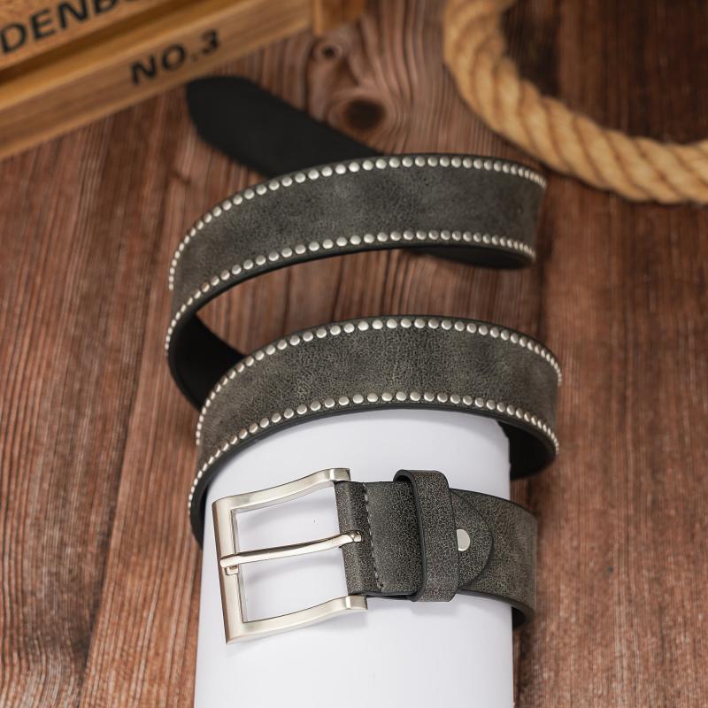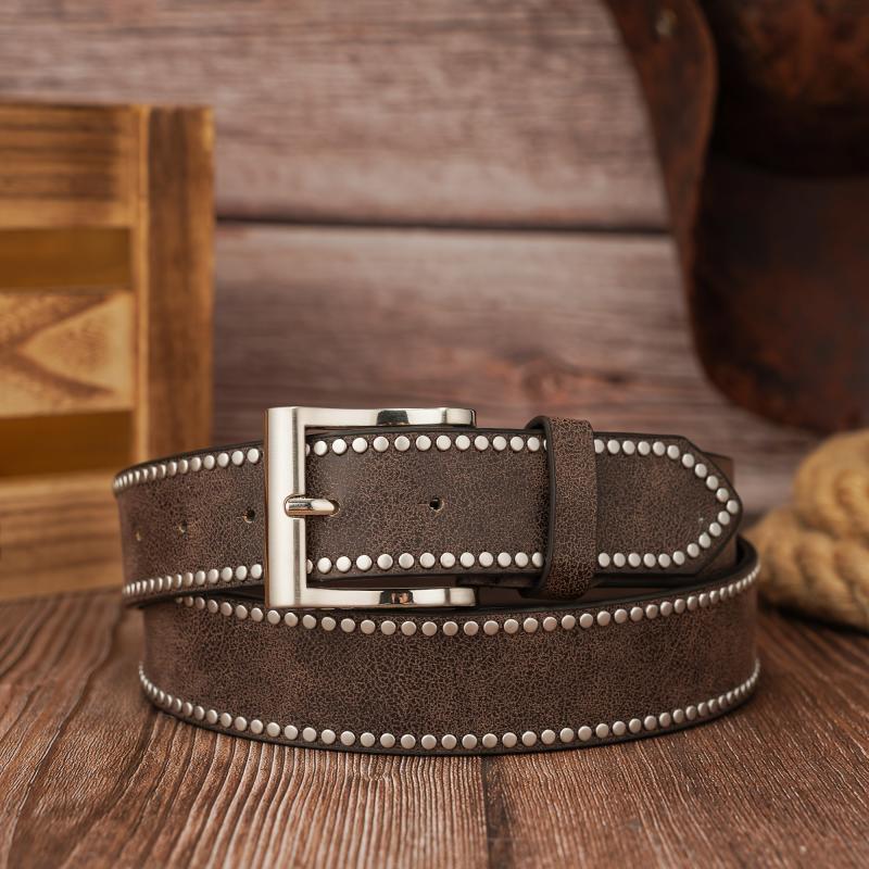 This stylish belt features a wavy retro buckle design with old rivets. Made from high-quality PU material, it's perfect for adding a touch of personality to your casual outfits.