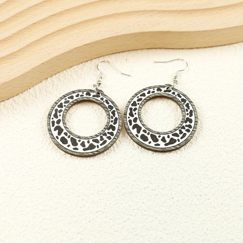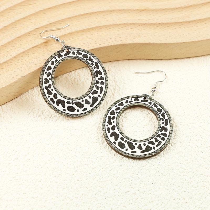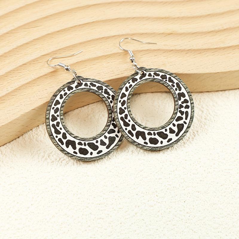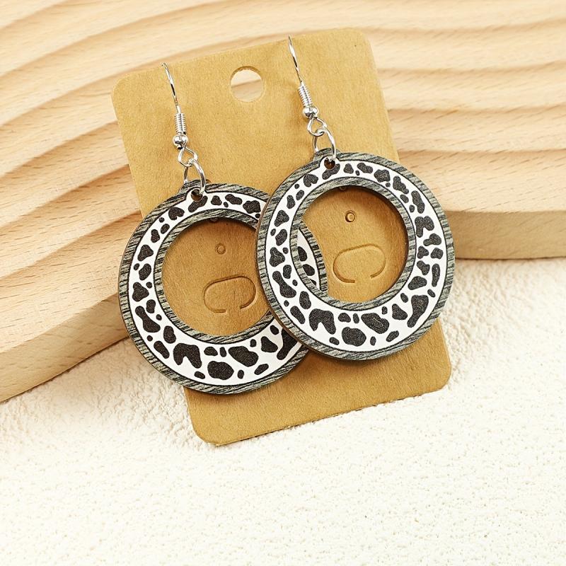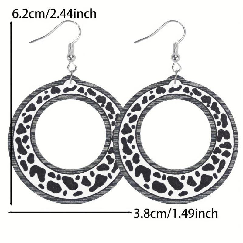 Add a touch of cowgirl style with these unique cow print wooden earrings. Made from recycled wood, these lightweight accessories are perfect for everyday wear.