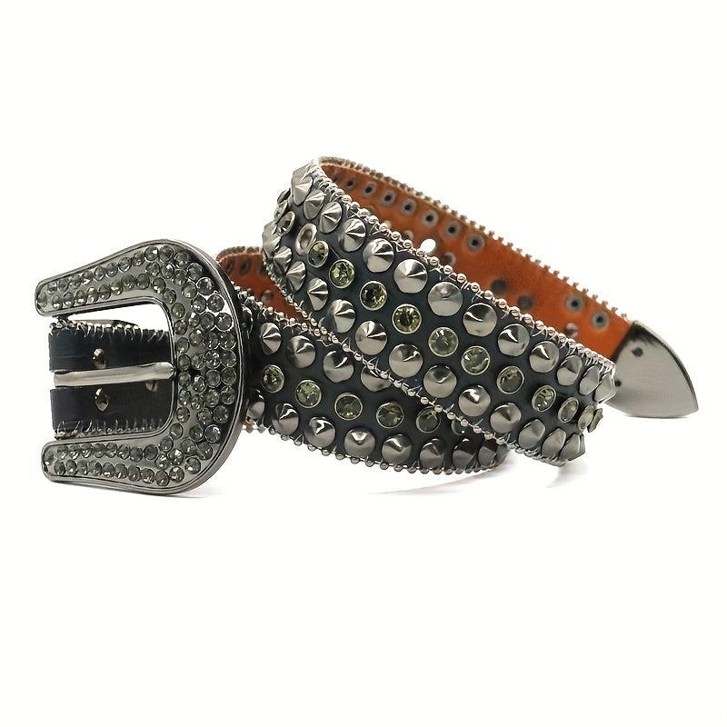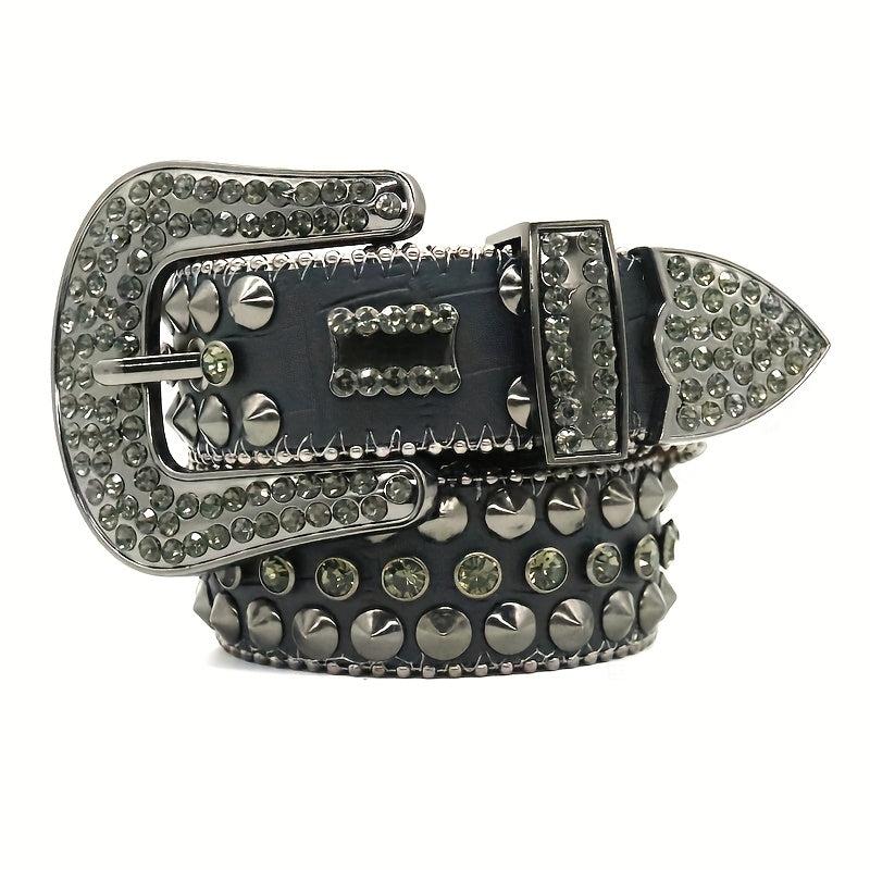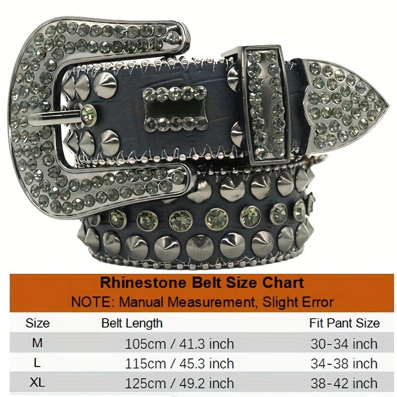Elevate your denim look with this sparkling rhinestone embellished belt. Perfect for both women and men.