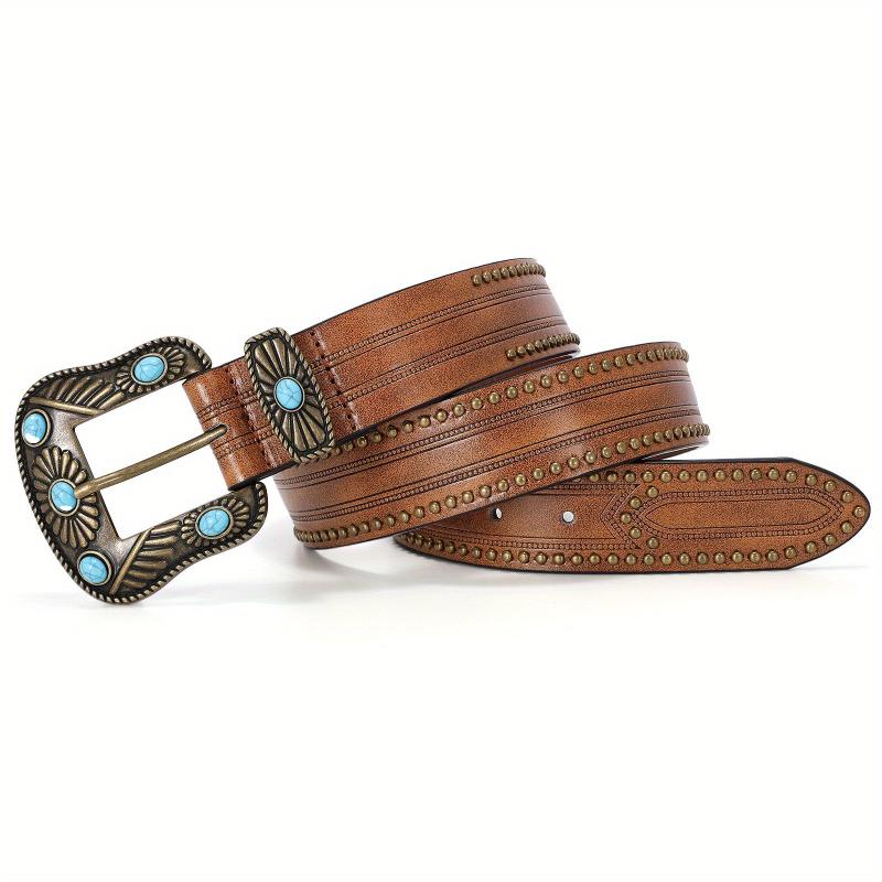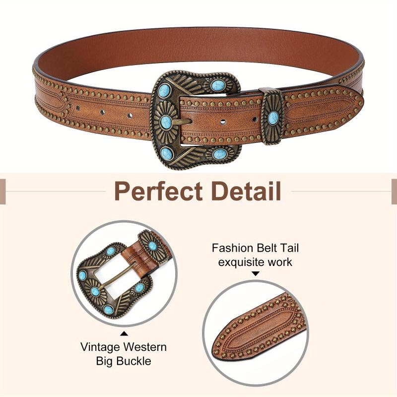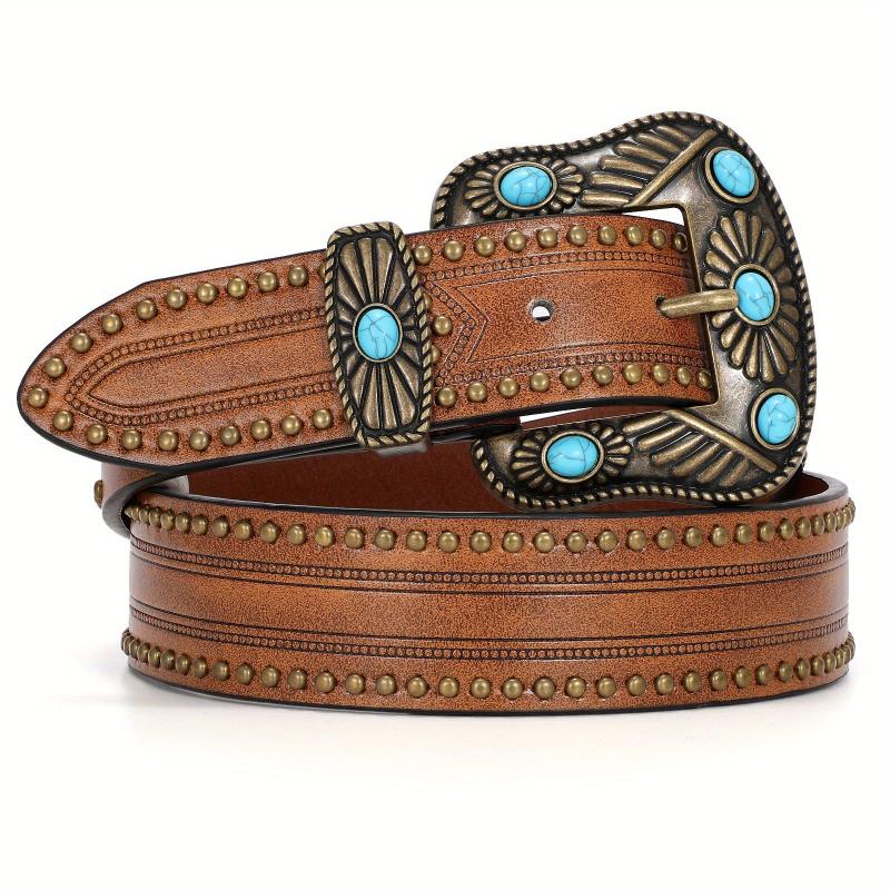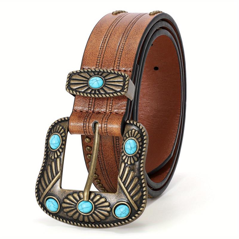 Add a stylish touch to your outfit with this WHIPPY Western PU Leather Belt featuring turquoise accents. Perfect for jeans and pants, suitable for party wear.