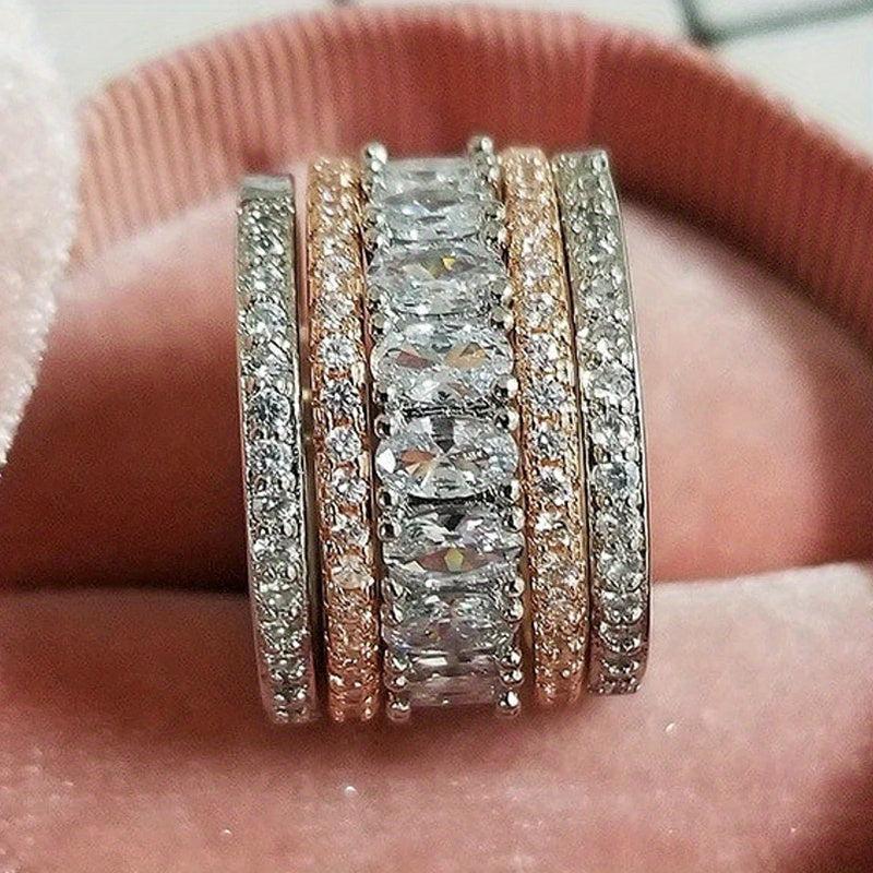 Wide Band Ring with Cubic Zirconia Two Tone Engagement Wedding Party Anniversary