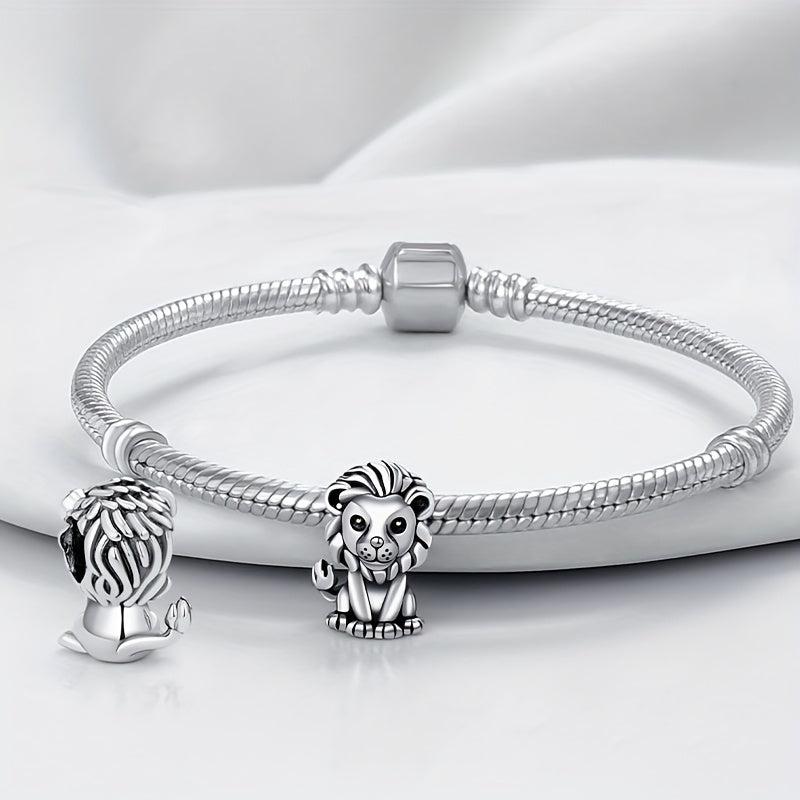 This wildlife-themed bracelet and necklace set features intricate lion beads on a vintage silvery strand. Perfect for themed parties and daily wear, ideal for DIY jewelry making.