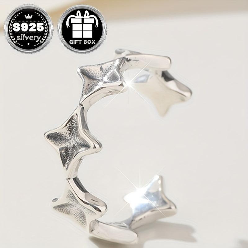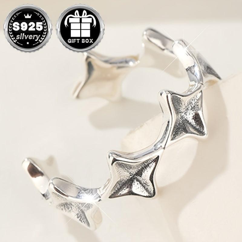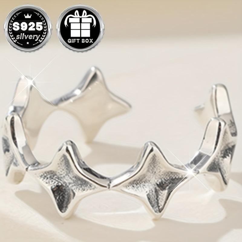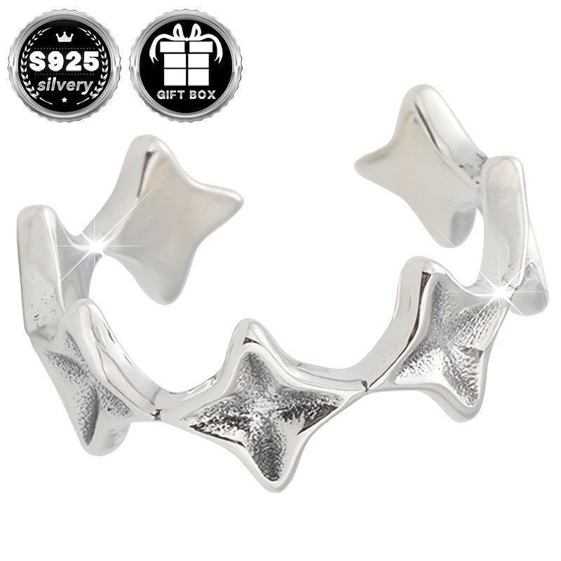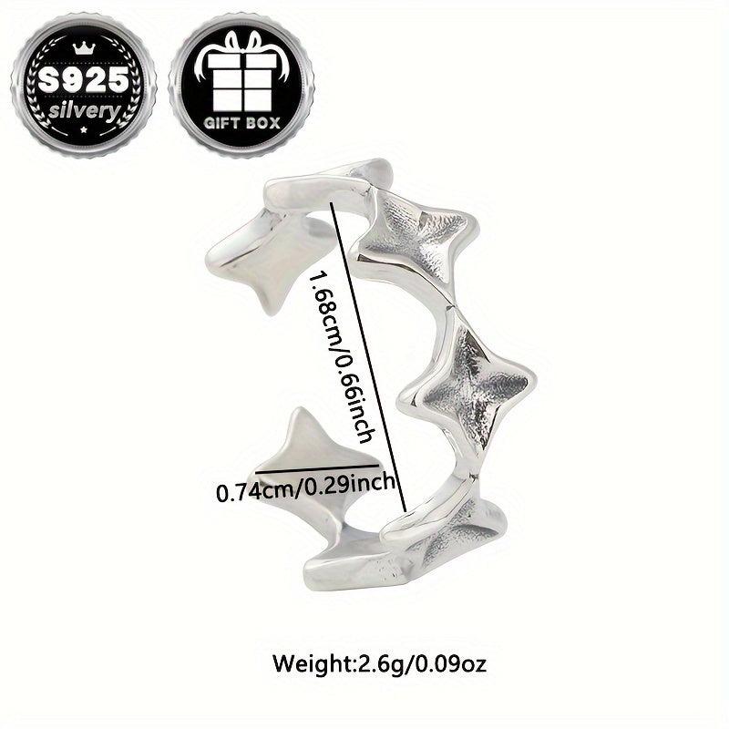 This classic open ring features a cross and star design, made of 925 silver. Total weight is 2.6g. Perfect for daily wear and comes in a gift packaging.