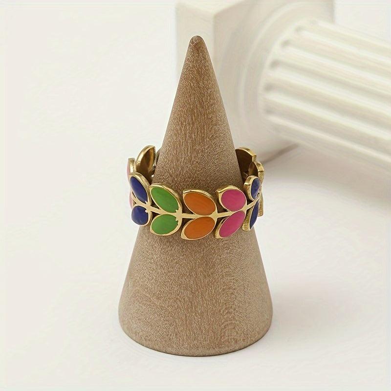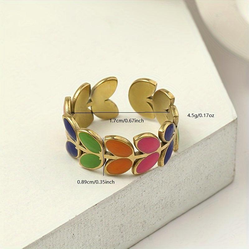 Add a touch of vintage charm to your look with this vibrant leaf open ring. Made of hypoallergenic and nickel-free stainless steel, this eye-catching piece is perfect for all-season wear.