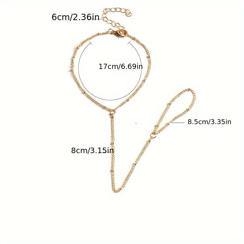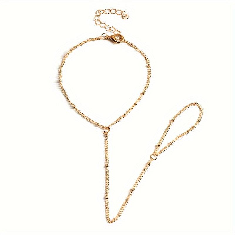 This delicate bracelet ring chain features a beautiful bead chain design, perfect for adding a touch of elegance to your outfit.
