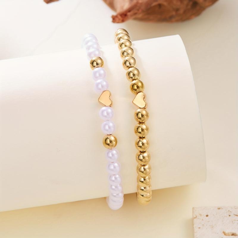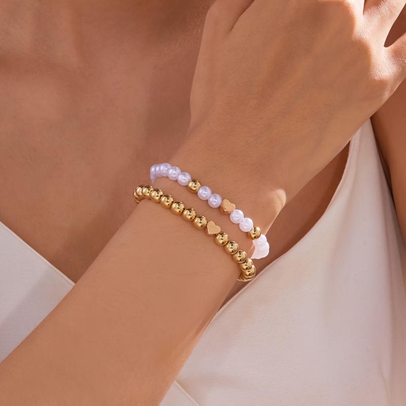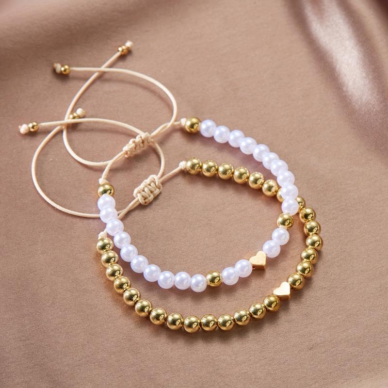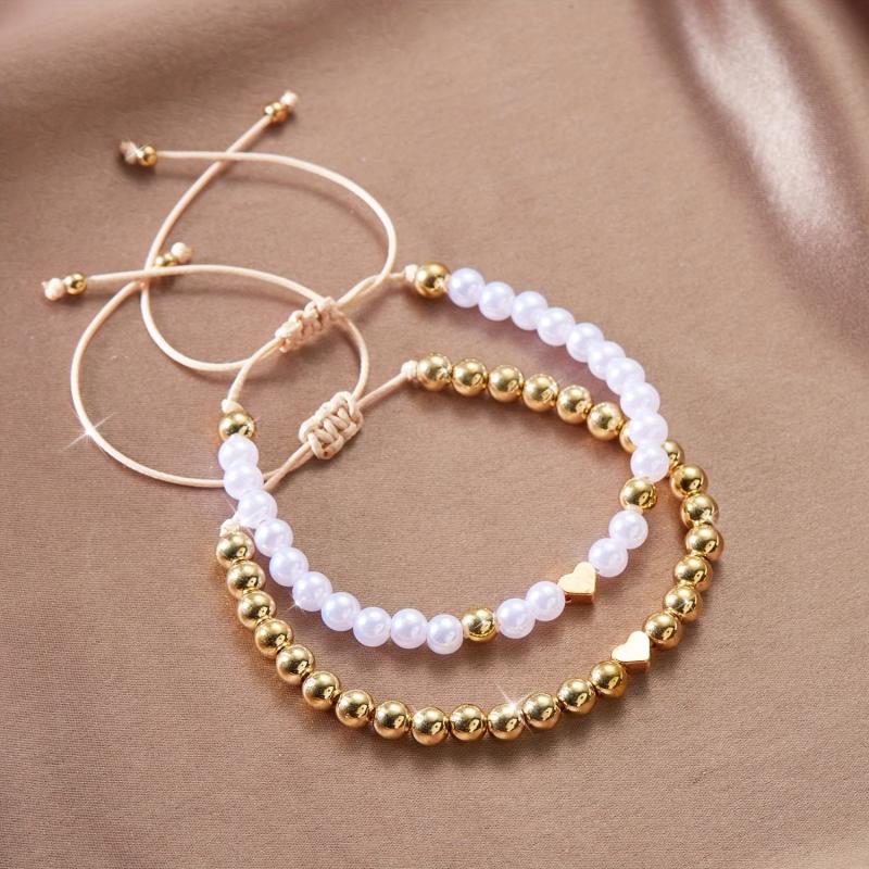 Elevate your style with this charming bracelet set featuring faux pearl and golden beads. Adjustable design for daily wear and parties.