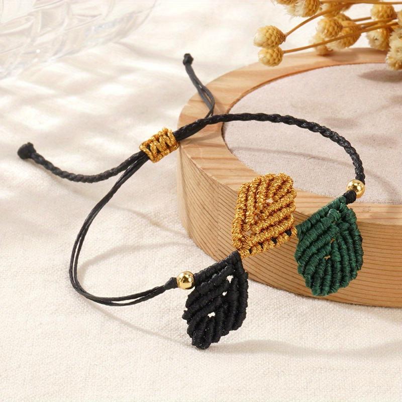 Add a touch of ethnic charm to your outfit with this versatile polyester braided leaf bracelet. Perfect for daily wear or holiday adventures, the vibrant colorful leaves and adjustable fit make it a casual must-have accessory.