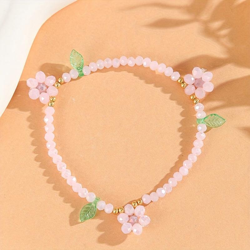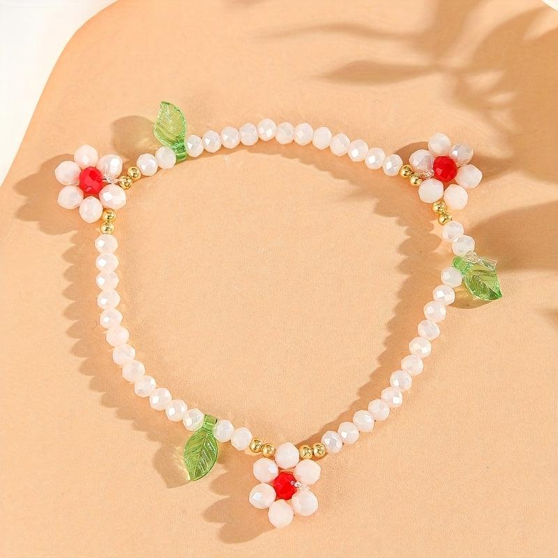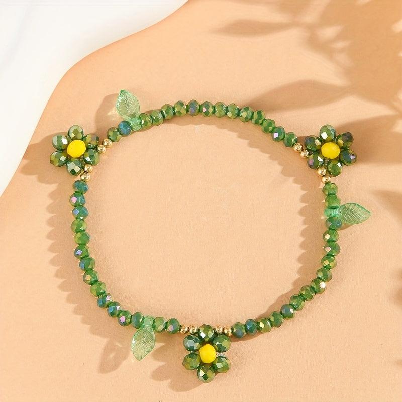This bracelet features a fresh and minimalist design with floral leaf beads, perfect for daily, vacation wear, and holiday outfits.