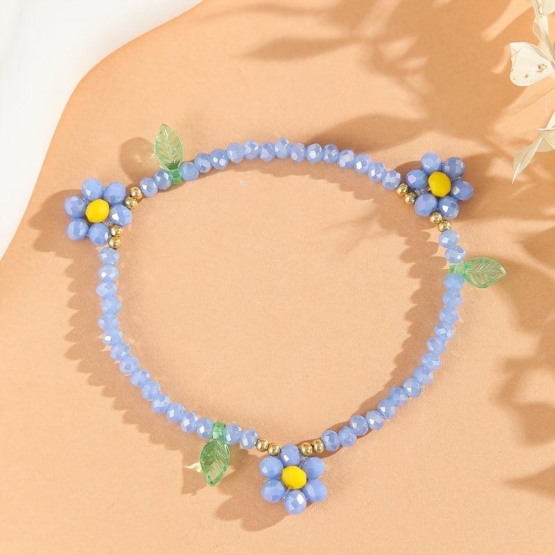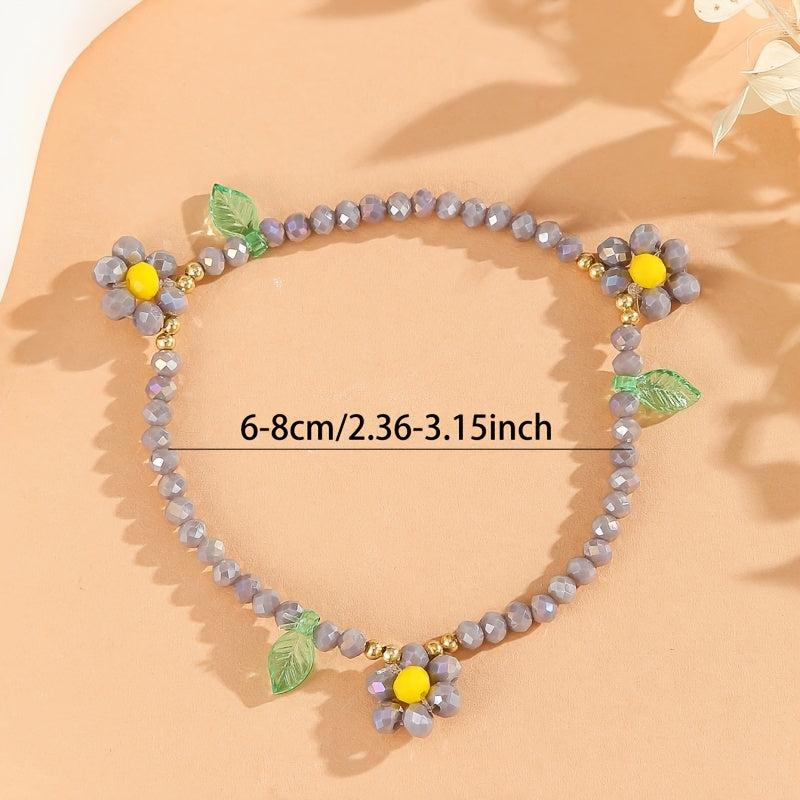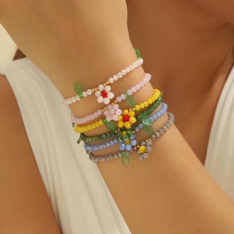 Women's Floral Leaf Beaded Elastic Bracelet for Daily Wear