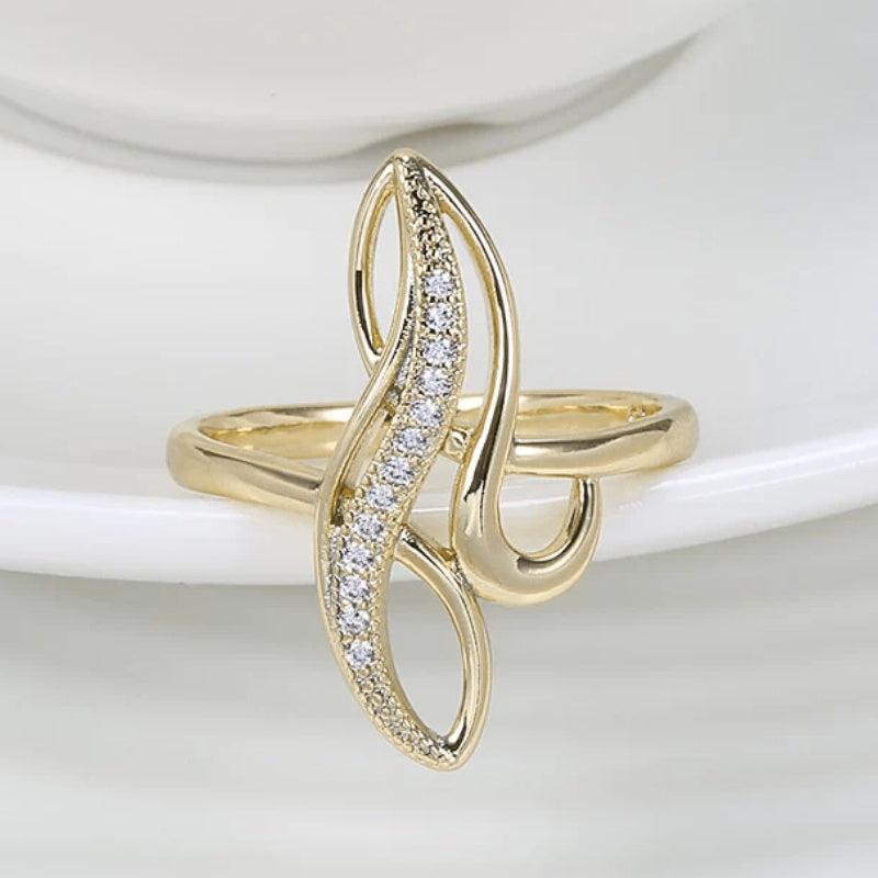 Elevate your style with this stunning statement ring featuring intertwined geometric lines and synthetic zirconia stones. Perfect for daily wear, parties, and holidays.