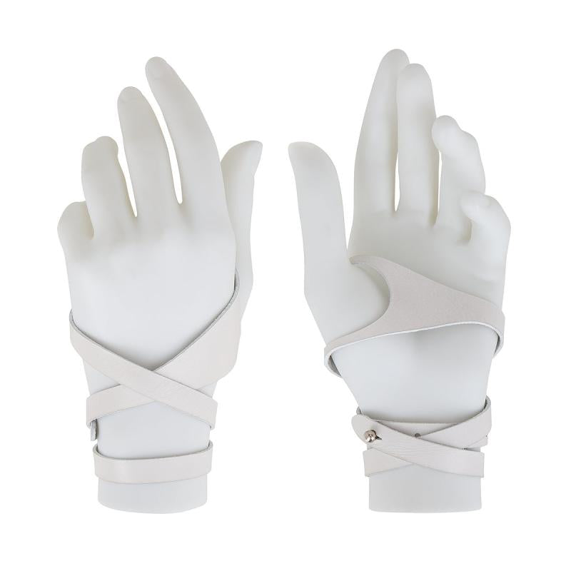 Add a touch of edgy style to your outfit with this faux leather wrist cuff bracelet featuring a thumb wrap and decorative accents. Perfect for daily wear or as a vacation accessory.