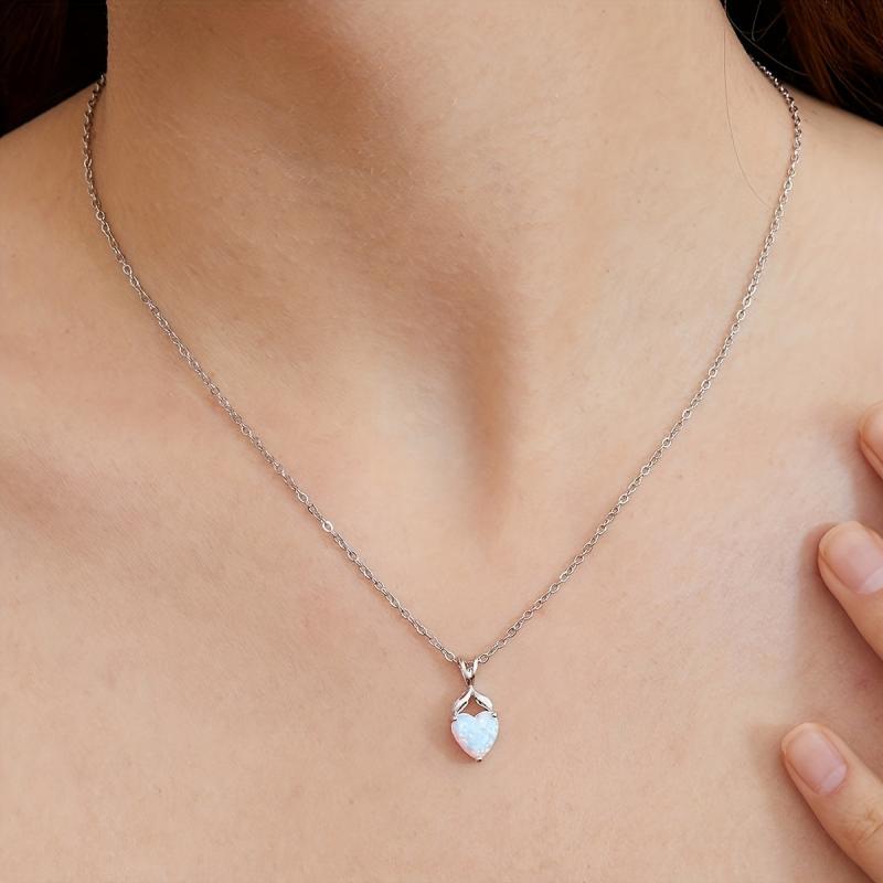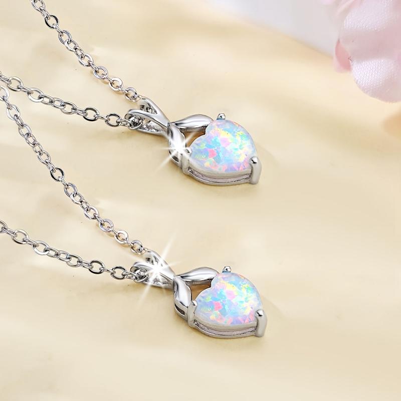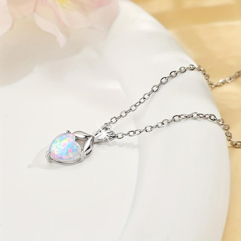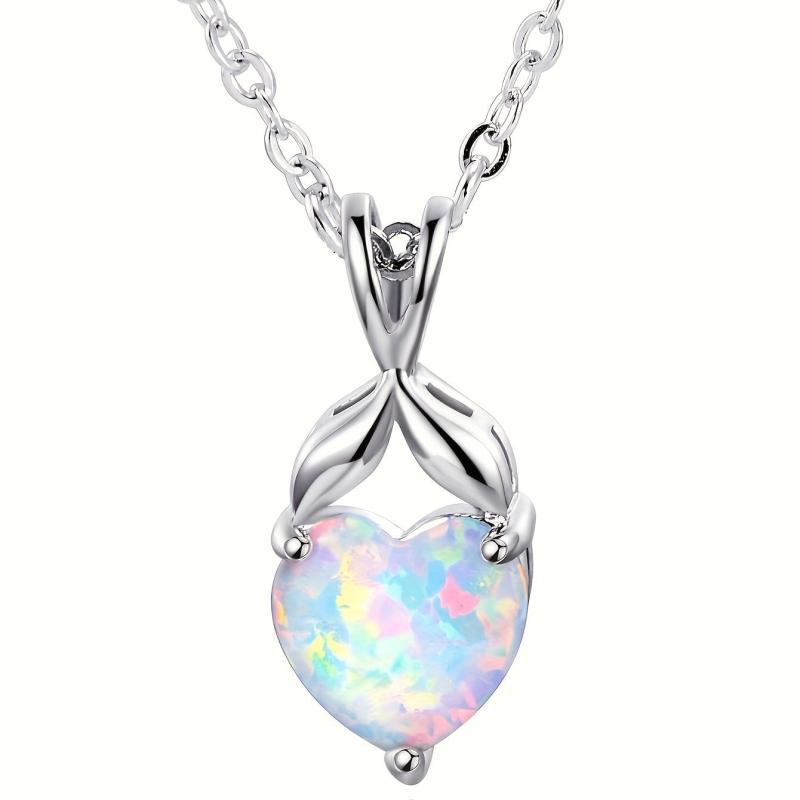 Elevate your everyday look with this stunning heart-shaped synthetic opal pendant necklace. Perfect for any occasion, this single piece makes a great holiday gift or romantic present for someone special.
