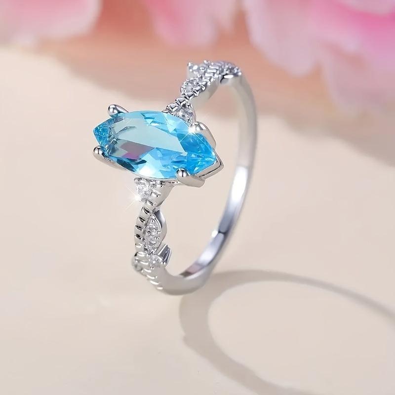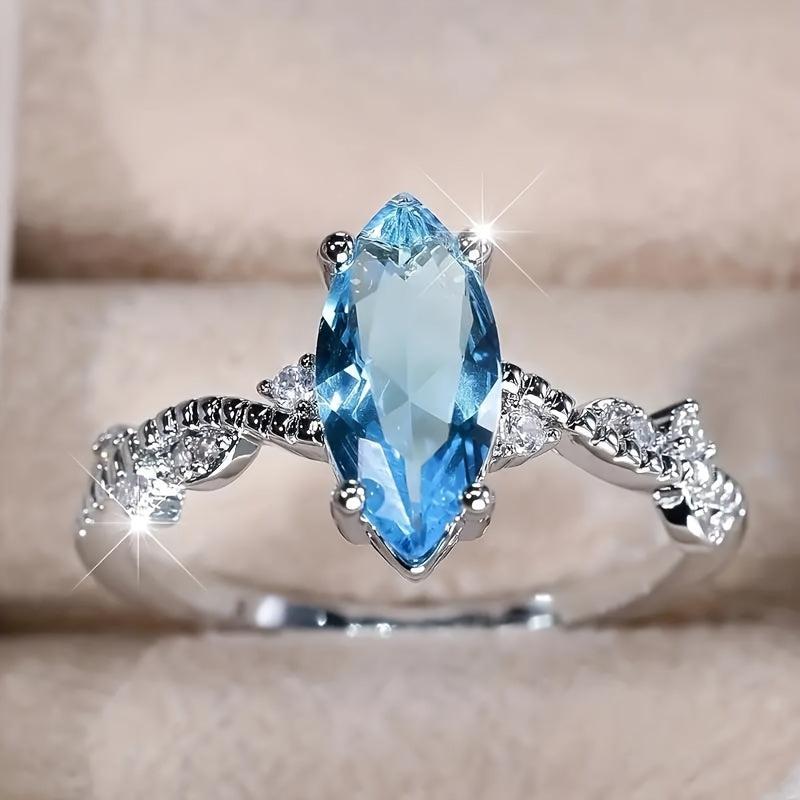 This elegant wedding ring features a horse eye shaped design adorned with synthetic zircon. Made of high-quality copper with a silver plated finish, it is suitable for all seasons and makes a charming gift for anniversaries and engagements.