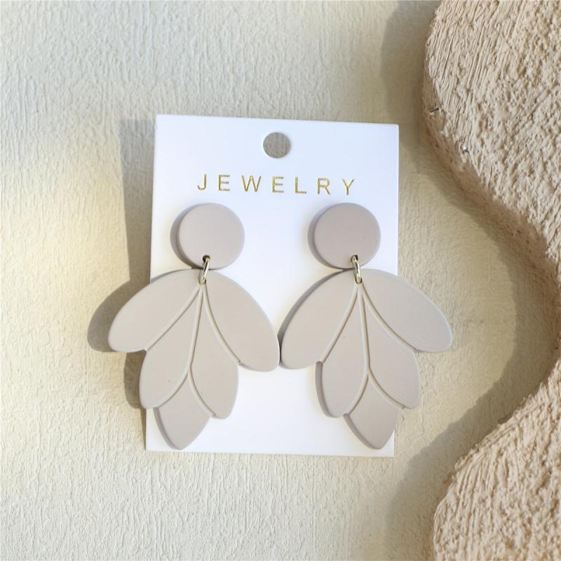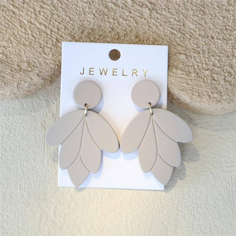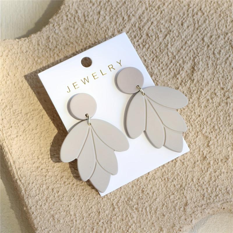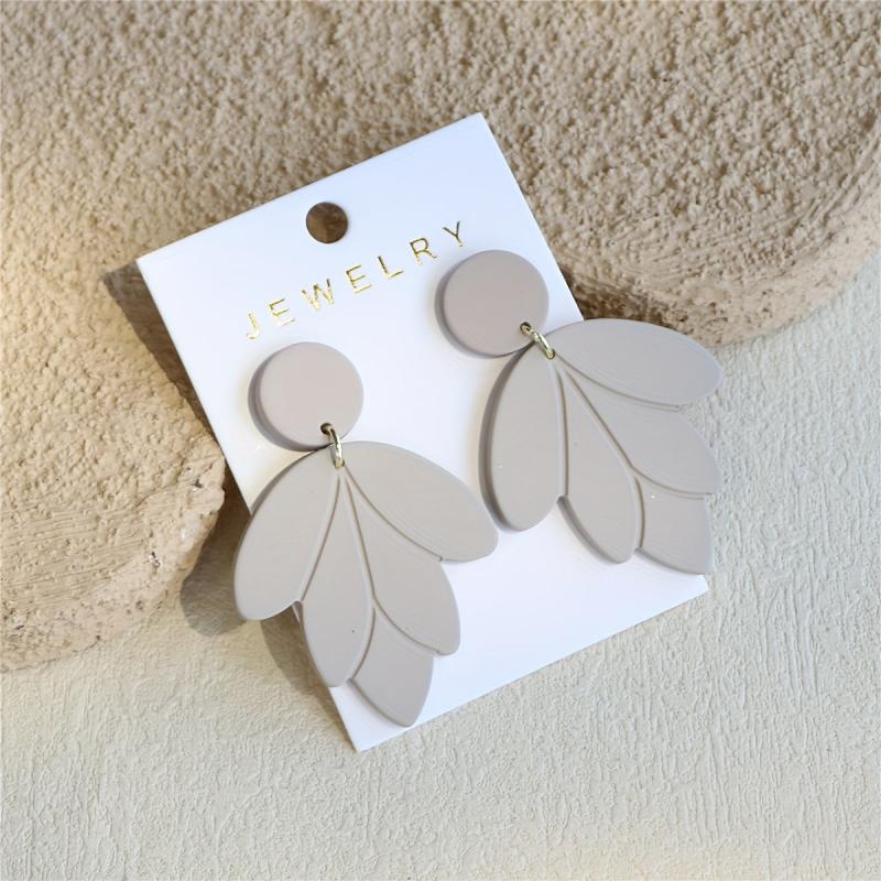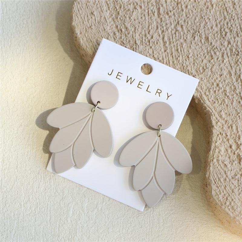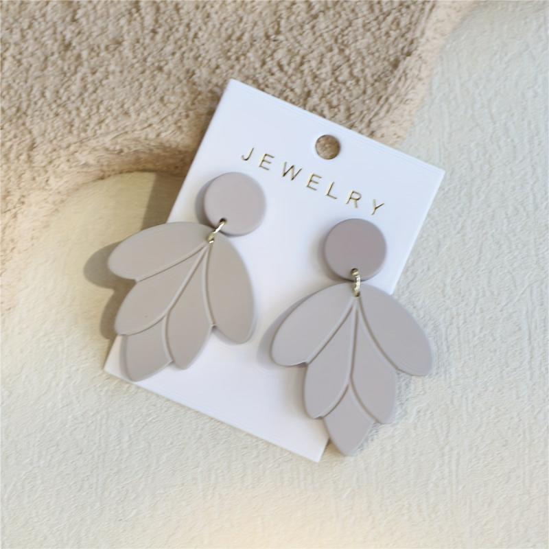Elevate your style with this pair of versatile earrings. The light gray leaf-shaped acrylic earrings are perfect for daily wear, while the dangle earrings add a vintage touch. A great gift idea for any occasion!