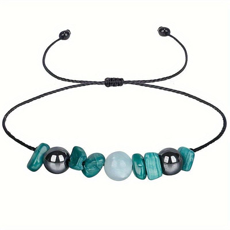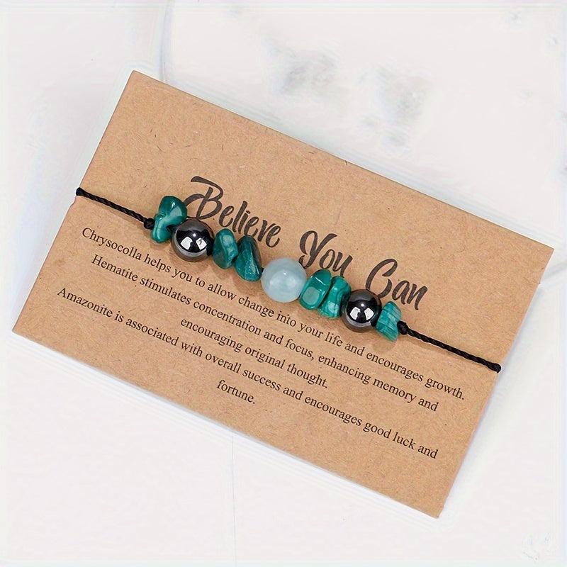 This adjustable waxed wire bracelet features malachite and tianhe stone beads with a motivational charm. Perfect for daily wear or as a gift for teachers or graduates.