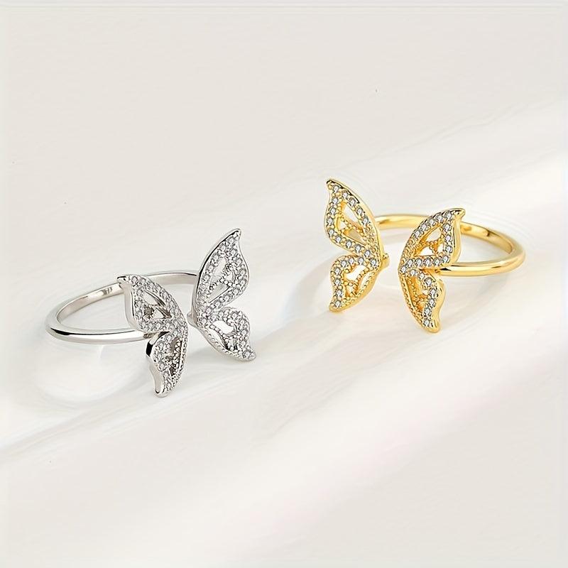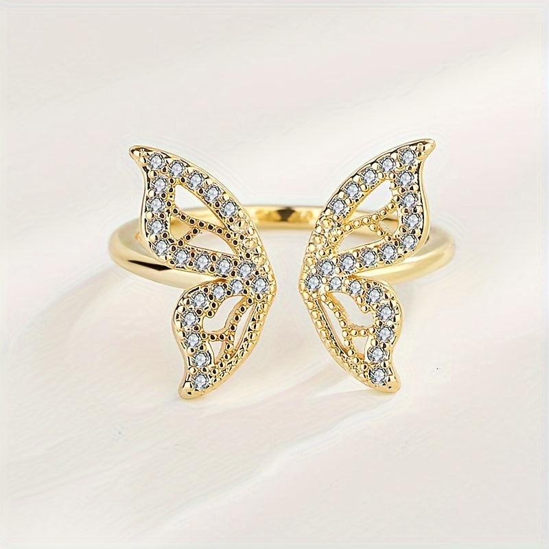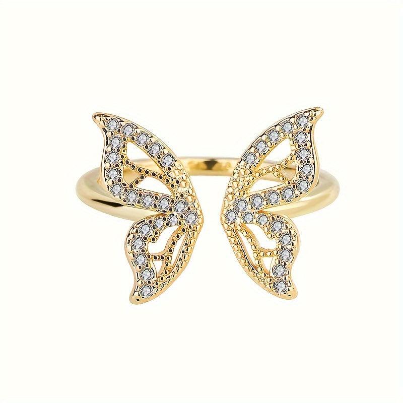 This stunning copper butterfly ring is adorned with synthetic zircon rhinestones, making it a perfect accessory for any occasion.