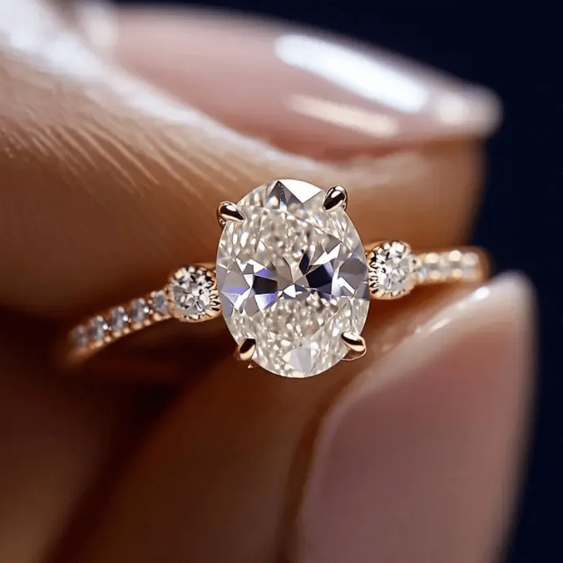 This stunning engagement ring features a sparkling oval synthetic zirconia stone in a 4 prong setting. The ring is plated with KC golden for a luxurious look. Perfect for all seasons and holidays.