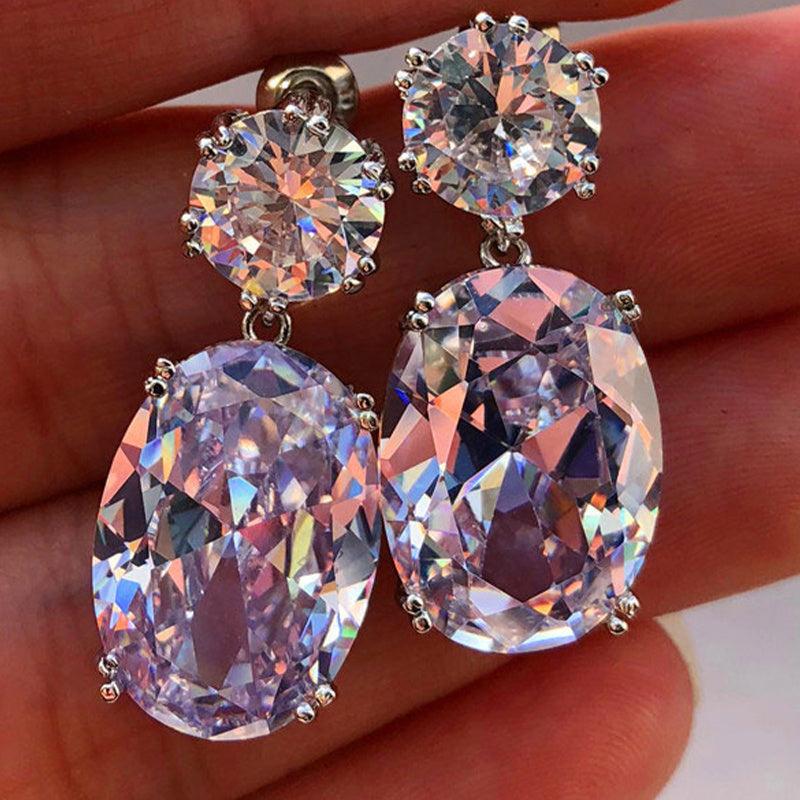 These stunning drop earrings feature pink and clear cubic zirconia stones, set in nickel copper. Perfect for weddings, engagements, parties, and special occasions.