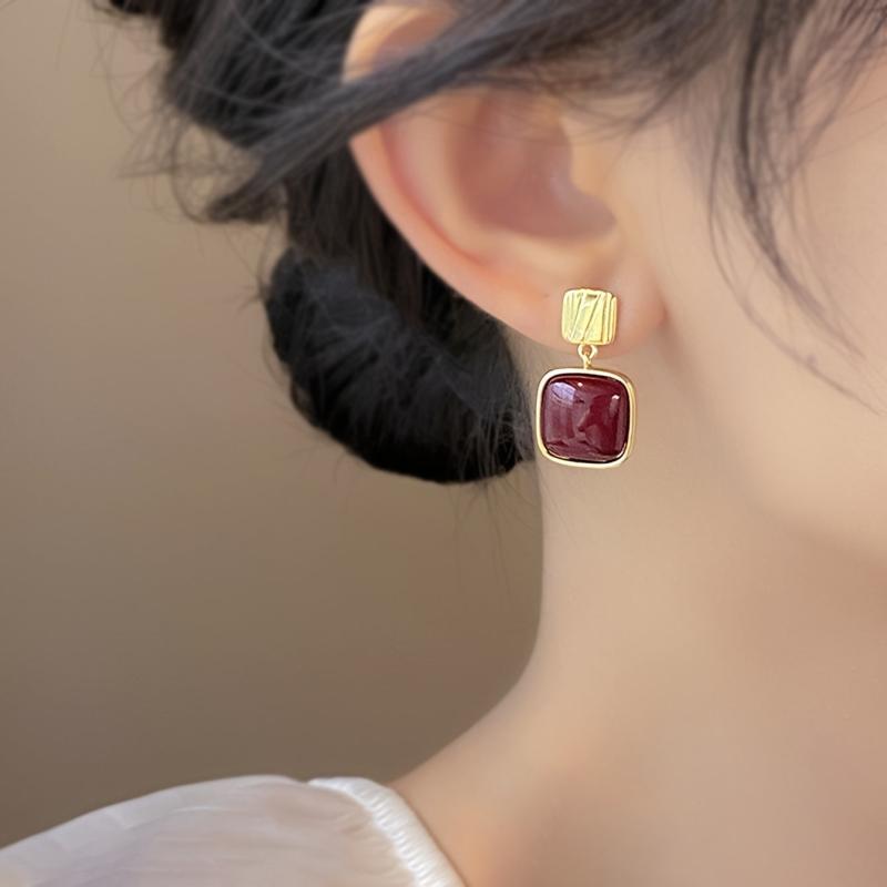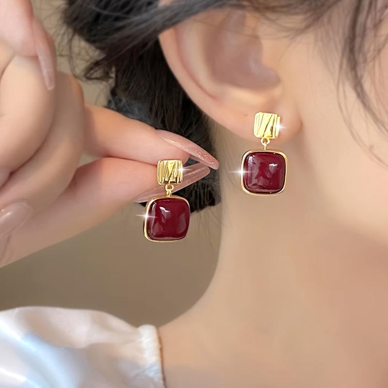 Women's Red Geometric Square Earrings Wedding Season Jewelry