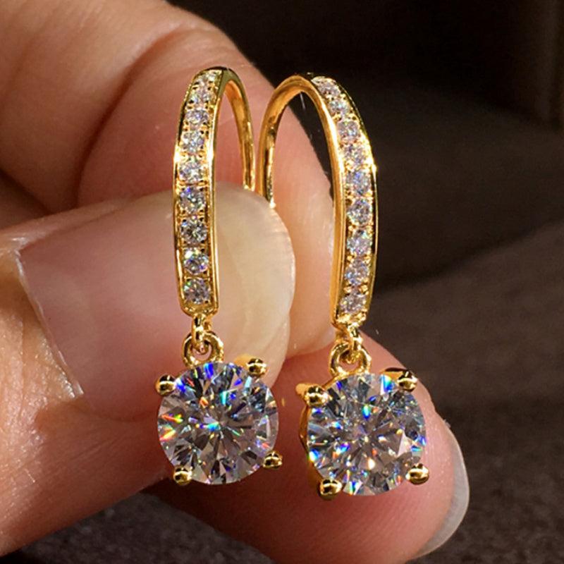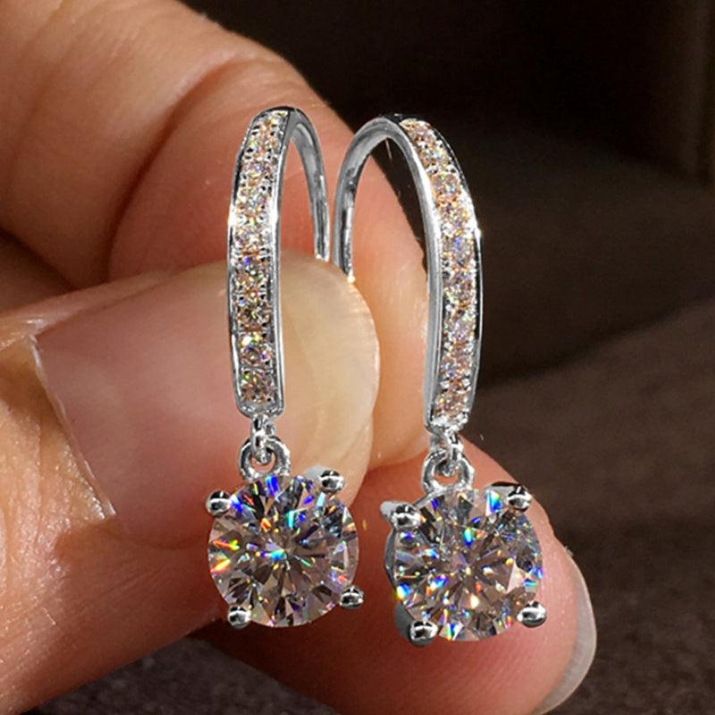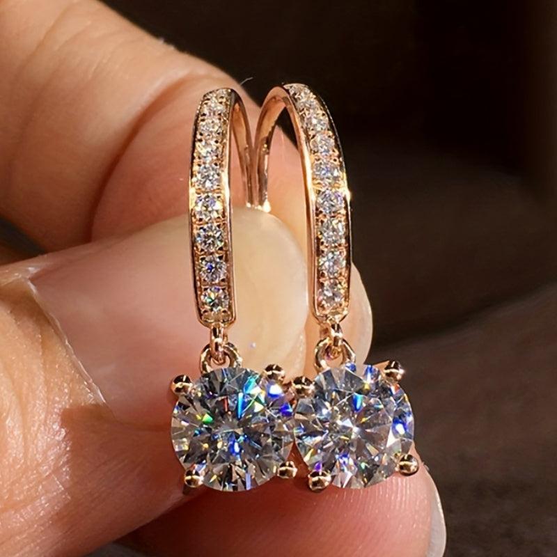 Women's Rose Gold Dangle Earrings with Zirconia Stones - April Birthstone