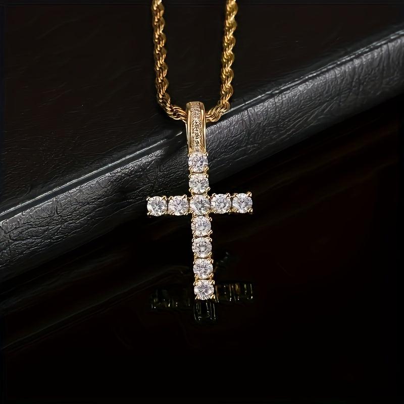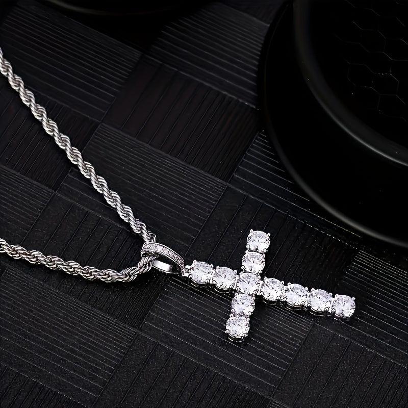 Add a touch of elegance to your look with this sparkling cross pendant necklace featuring synthetic zirconia stones. Perfect for Easter parties or casual wear.