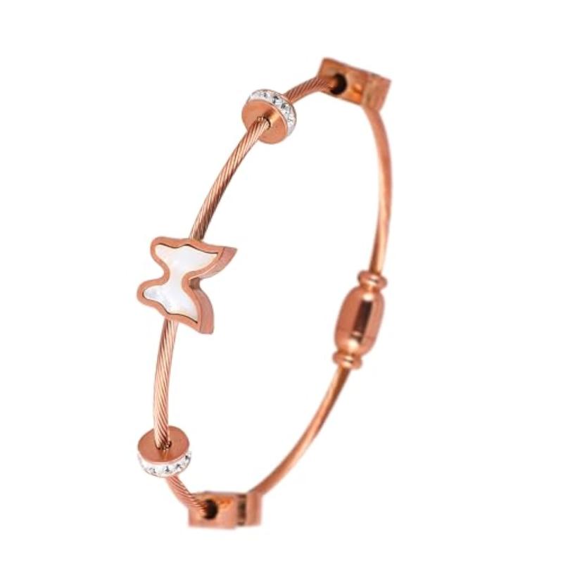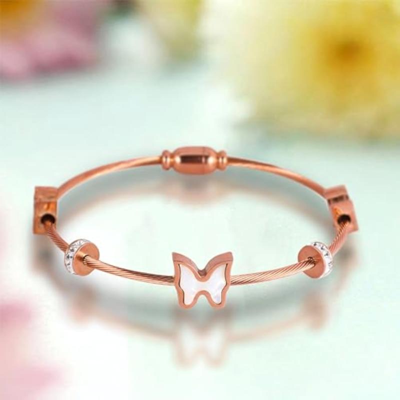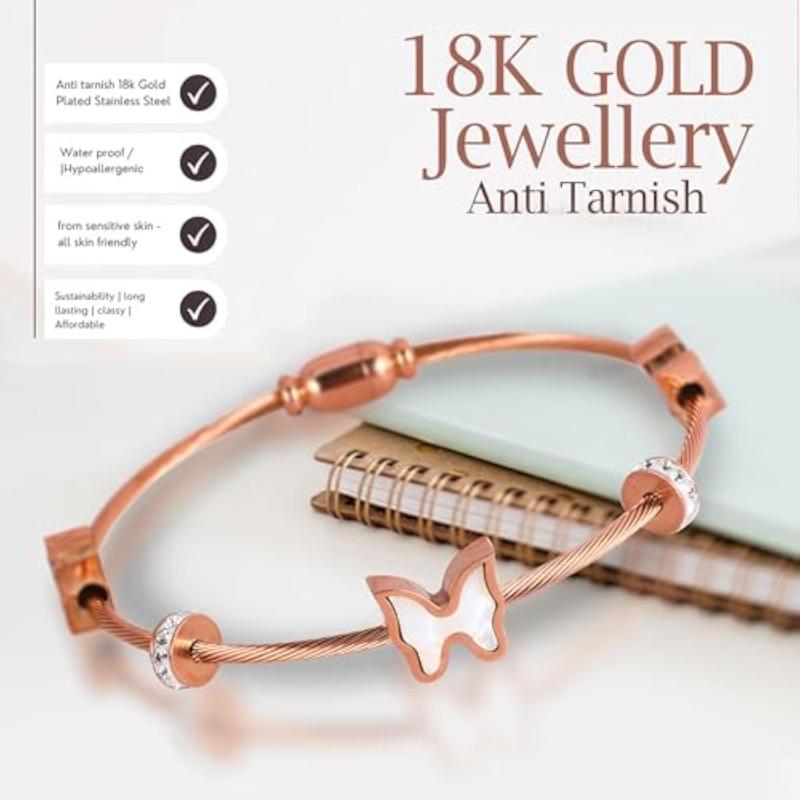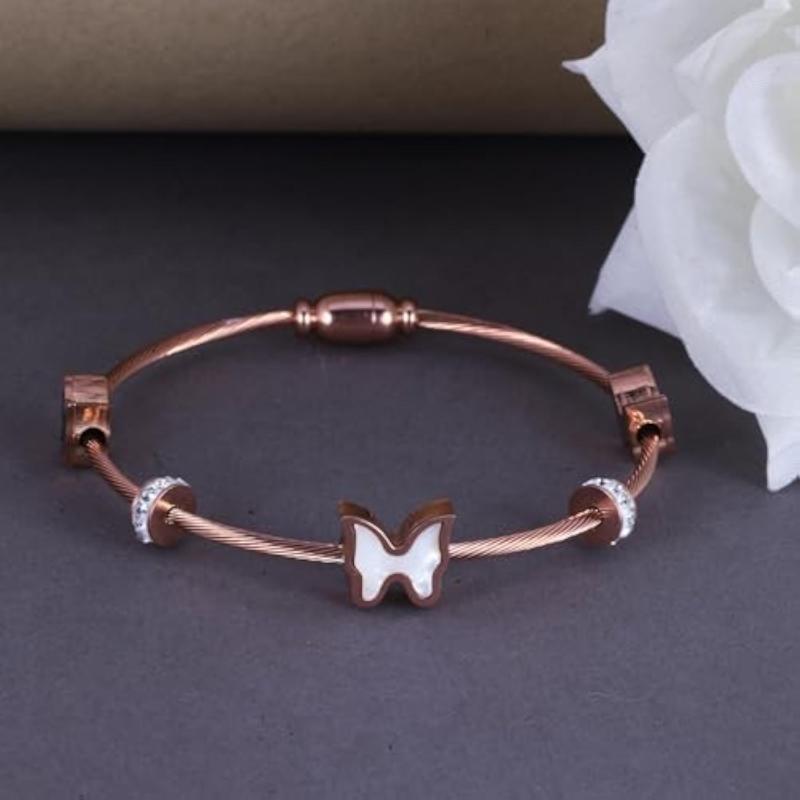 Add a touch of elegance with this butterfly and rose kada bracelet that is perfect for daily wear. The anti-tarnish feature ensures long-lasting shine.