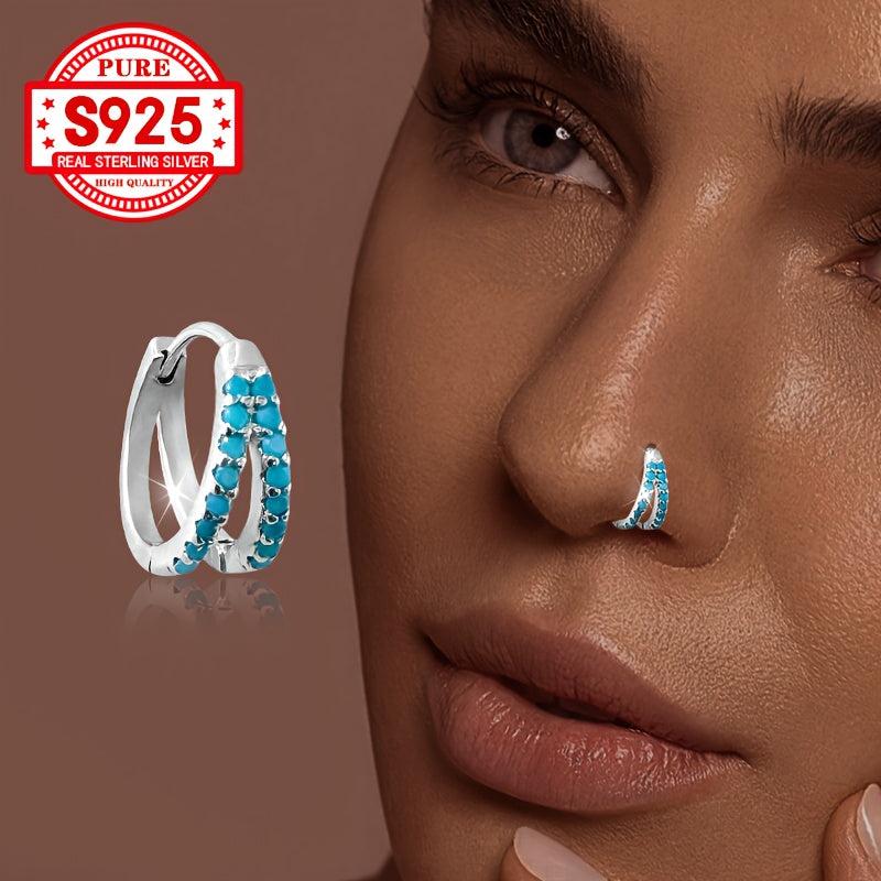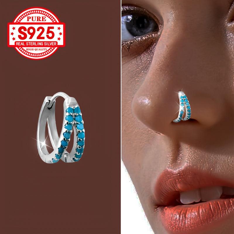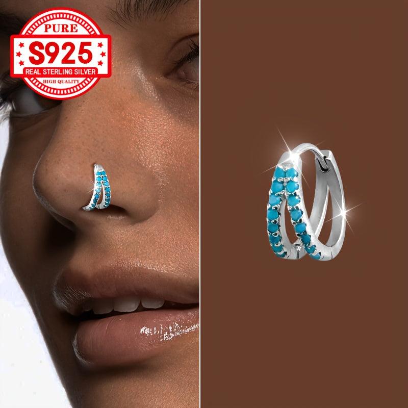 Add a touch of bohemian flair to your look with this synthetic turquoise nose and ear ring set. Perfect for stacking and creating a retro vibe, made from s925 silver for a durable and stylish design.
