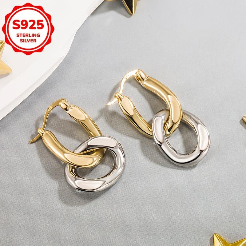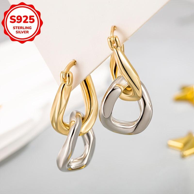 Stay stylish with these elegant two-tone pendant earrings that are perfect for daily wear or holiday occasions. Made of 925 silver with low allergy properties, these earrings are suitable for all seasons.